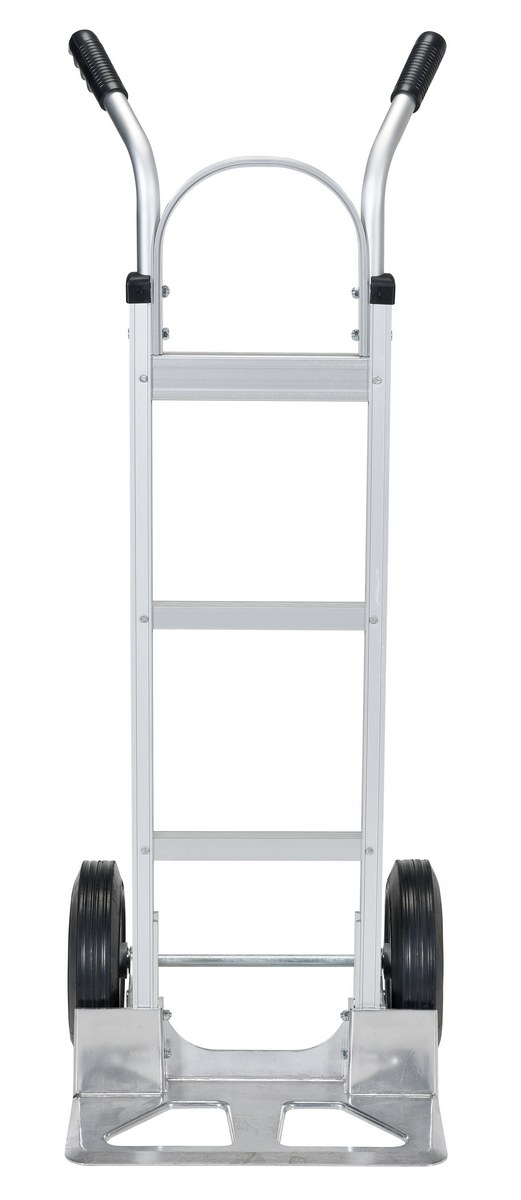 Aluminum Dual Handle Deluxe Hand Truck with Hard Rubber Wheels 19 In. x 19-1/2 In. x 51-1/4 In. 500 Lb. Capacity SilverThe deluxe Aluminum Hand Truck maximizes control for different types of loads. This hand truck can transport boxes wherever they are needed. Transport loads smoothly and evenly over rough or uneven floors.