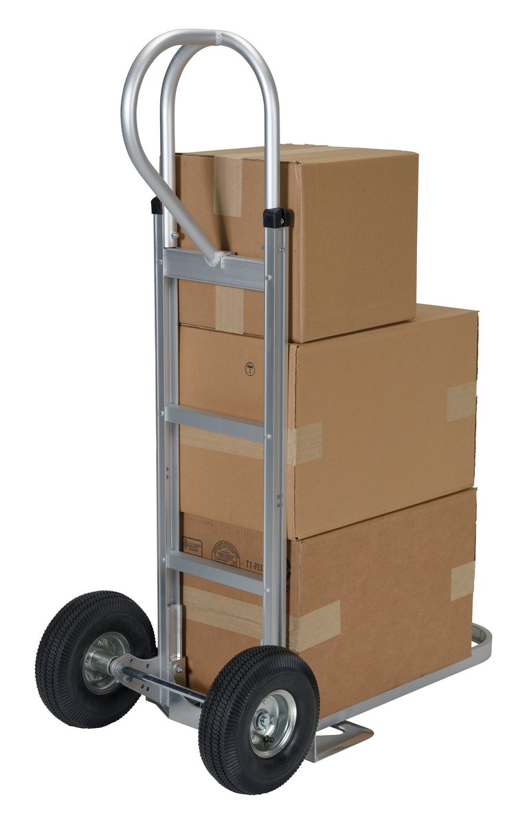 Aluminum P Handle Truck with Pneumatic Wheels 18-1/2 In. x 20-1/2 In. x 52-1/2 In. 500 Lb. CapacityThe "P" handle Hand Truck is ideal for transporting heavy and awkward loads. This truck works well for the user that needs to free up one hand. The "P" shaped handle makes the truck easy to steer and maneuver.