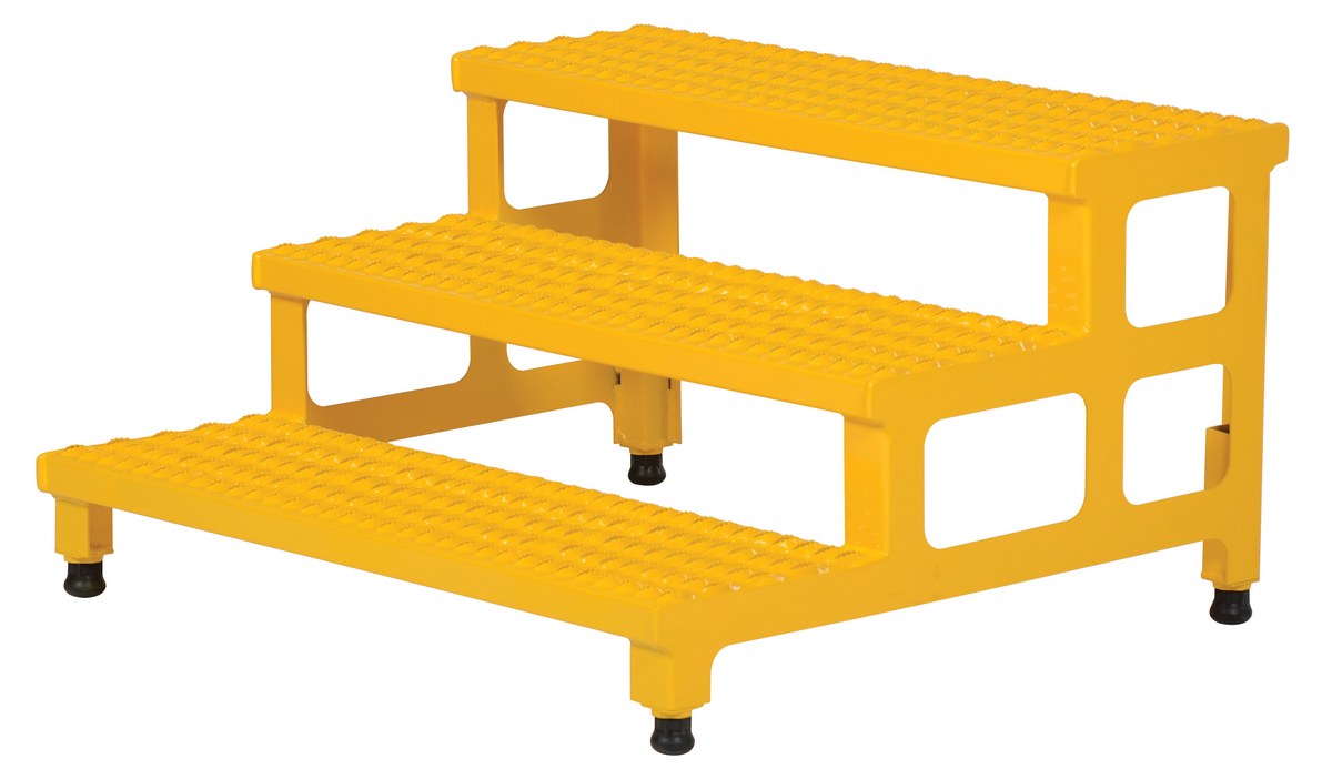 Steel Adjustable Step Mate Stand 3 Step 33-7/8 In. x 36-3/16 In. x 22-1/4 In. 500 Lb. Capacity YellowThe adjustable step-mate stand can be used as either a comfortable worker platform or a semi-permanent step. The serrated surface ensures safe footing. The legs adjust individually by screwing them into or out of the leg base.