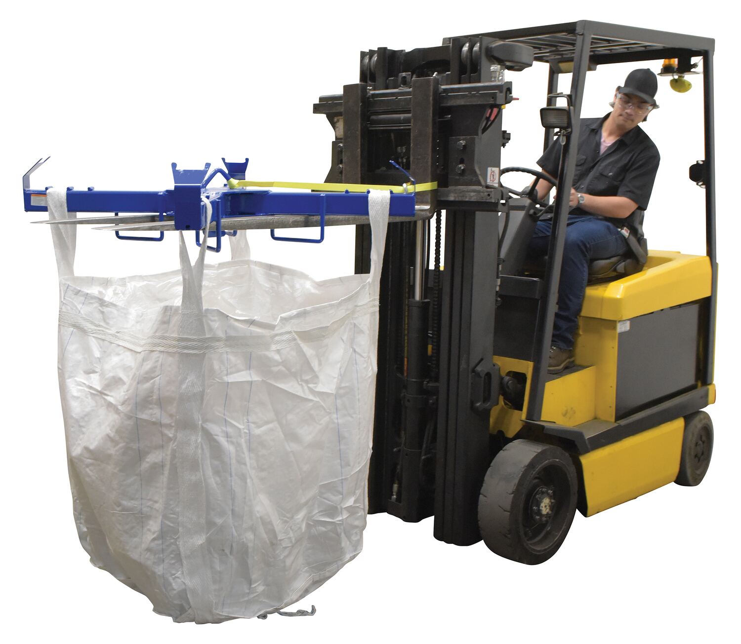 Steel Bulk Bag Lifter 39-15/16 In x 53-1/2 In x 11-9/16 In 4000 Lb. Capacity BlueThe bag lifter is ideal for industrial and manufacturing settings. The unit is constructed of powder coated steel for durability and added strength. The lifter can be used with the center mounted hook point for balanced lifting capabilities with an overhead hoist or with a forklift by utilizing the attached fork pockets (retaining strap included). After choosing which lifting style is best, secure the loops of the bag to the four strap points for safe maneuvering and transporting.