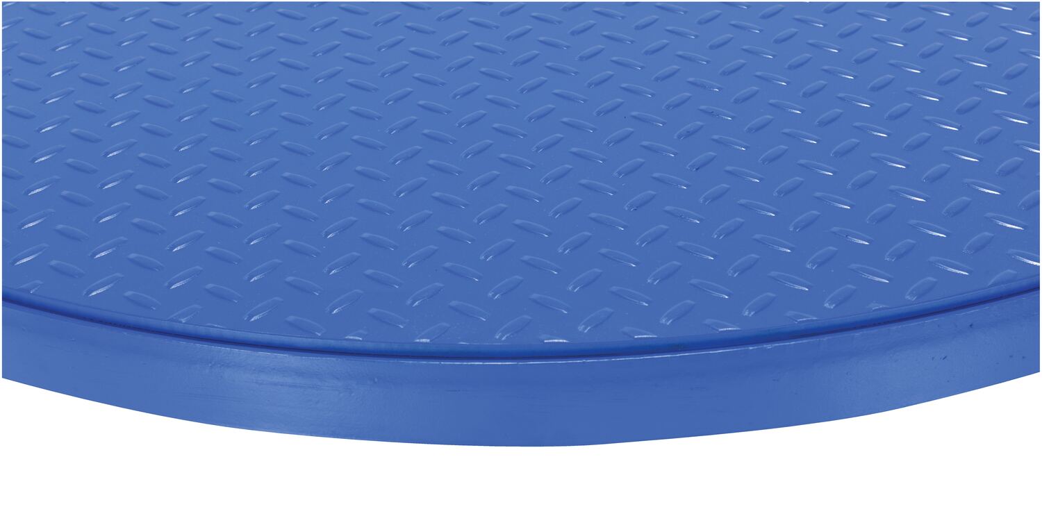 Steel 72 In. Carousel, 6K Capacity, Round Tread Top Plate BlueThis manual carousel rotates material with the assistance of an operator. Now, loading and unloading operations can be done more efficiently minimizing fatigue and risk of back injury. The carousel may be added to an existing work bench, scissor table, or simply placed on the floor. A steel constructed top plate is included with the carousel for enhanced stability during use.