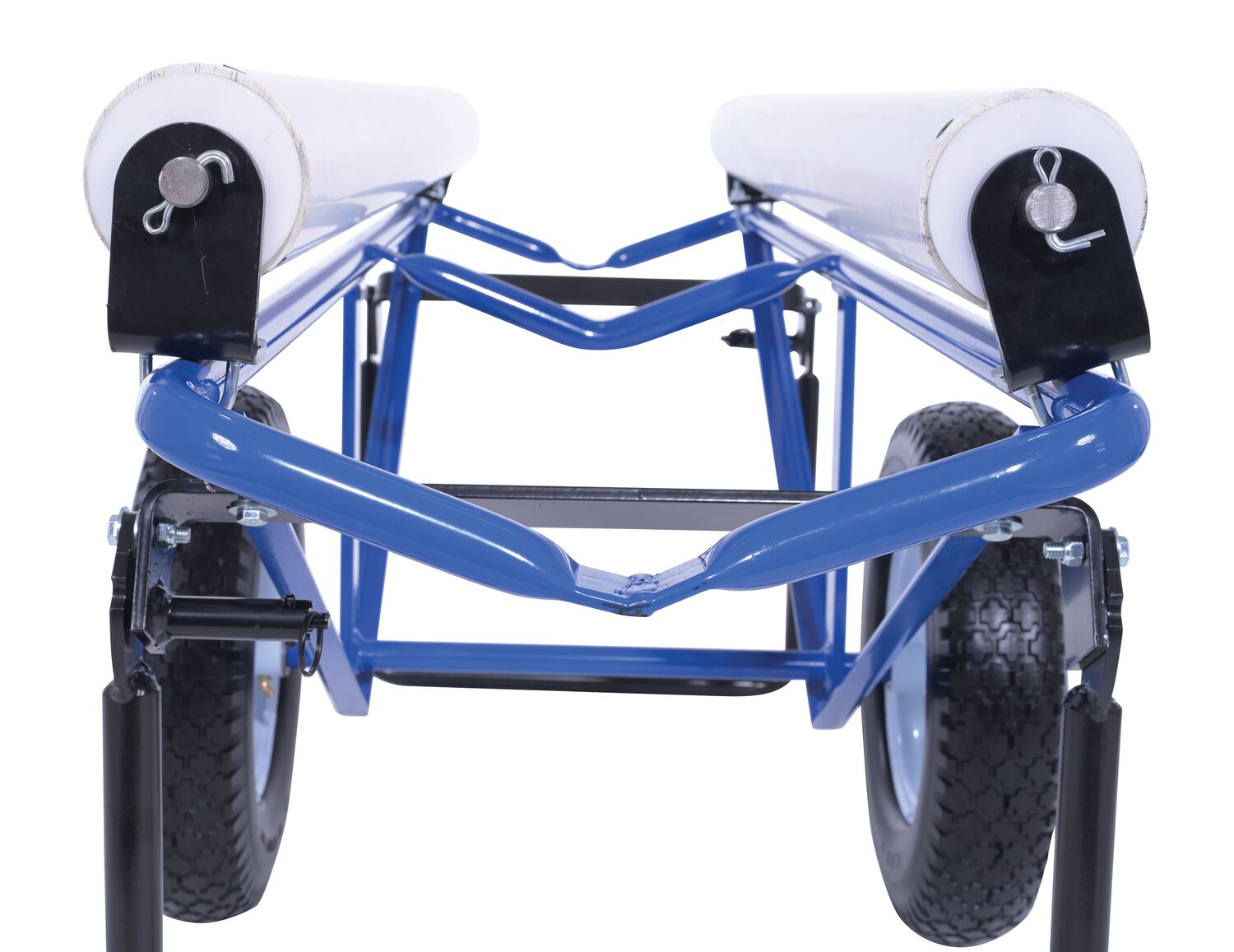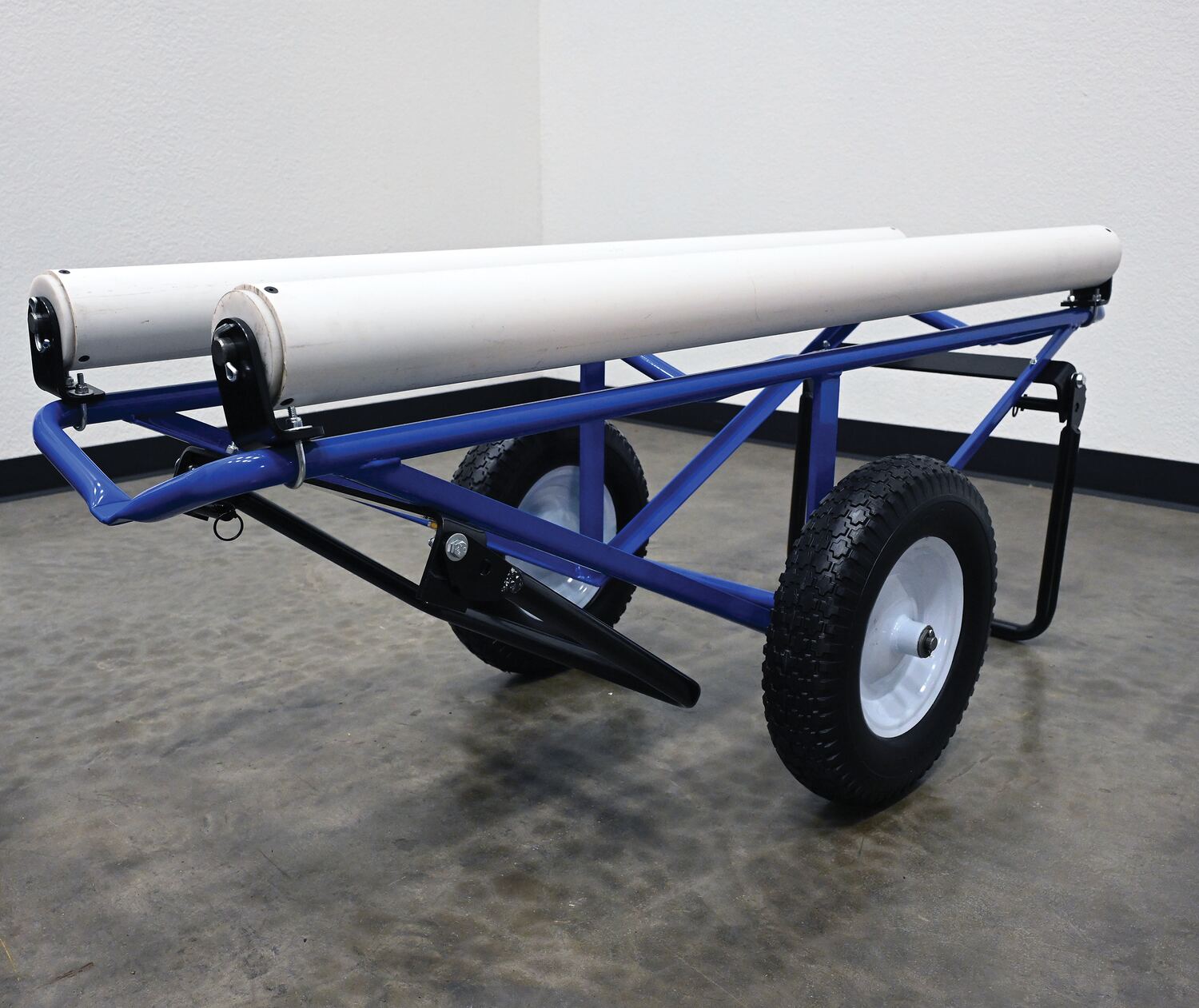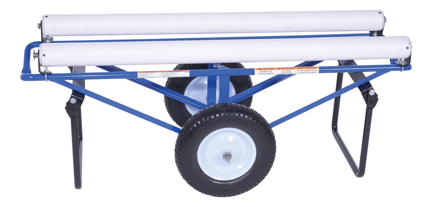 Portable Carpet Dispenser with Foam Filled Wheels 61 In. x 25-15/16 In. x 24-7/8 In. 500 Lb. Capacity BlueThis portable carpet dispenser minimizes lifting and pulling. Slide carpet onto rollers. Carpet unrolls as needed. Retractable legs stabilize the cart. Welded steel construction with powder coat blue finish.