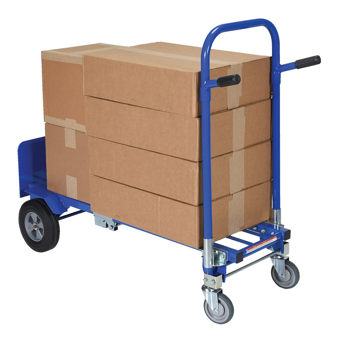 Steel Convertible Hand Truck 20 In. x 19-1/2 In. x 58-184 In. 500 Lb. Capacity BlueThe steel convertible Hand Truck is a versatile wonder. This hand truck can work in both the vertical and horizontal positions. The task of transporting smaller crates or long narrow boxes is now simplified. Hand truck rolls smoothly on casters.