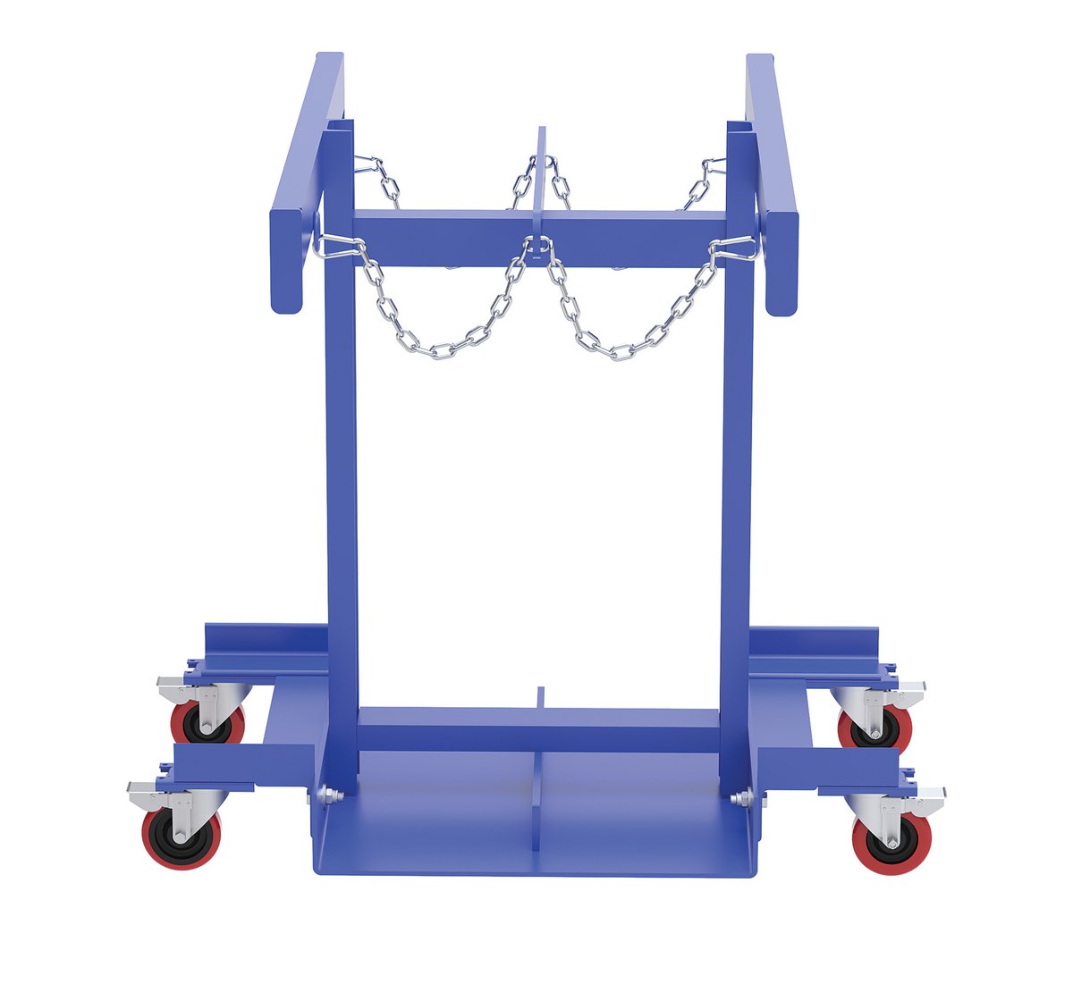 Steel Cylinder Caddy Truck with Casters 45 In. x 45 In. x 39 In. 4 Maximum Cylinders 800 Lb. Capacity BlueA Cylinder truck transports cylinders safely. This unit comes complete with safety chains to secure the cylinders in place. Made of all steel construction. The casters allow for portability without the need of a fork truck or pallet truck.