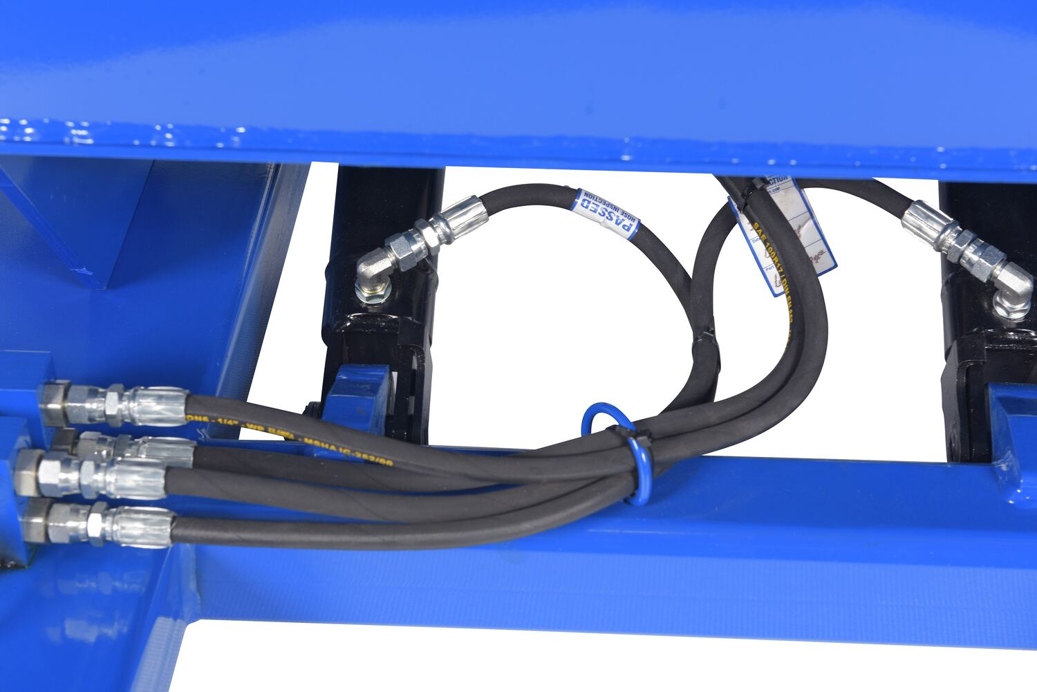 Steel Heavy Duty Hydraulic Dumping Hopper 3 Cubic Yard 6,000 Lb. Capacity BlueA hydraulic dumping hopper minimizes manual labor, while keeping workers safe. The hydraulic system is simply connected to a fork lift by using the hydraulic hose hookup. Utilizing the forklift levers, the hopper is activated to be dumped, as well as returned to its upright and locked position. The unit is constructed of 8 gauge steel with a powder coat finish. Optional casters are available for quick movement between workstations.