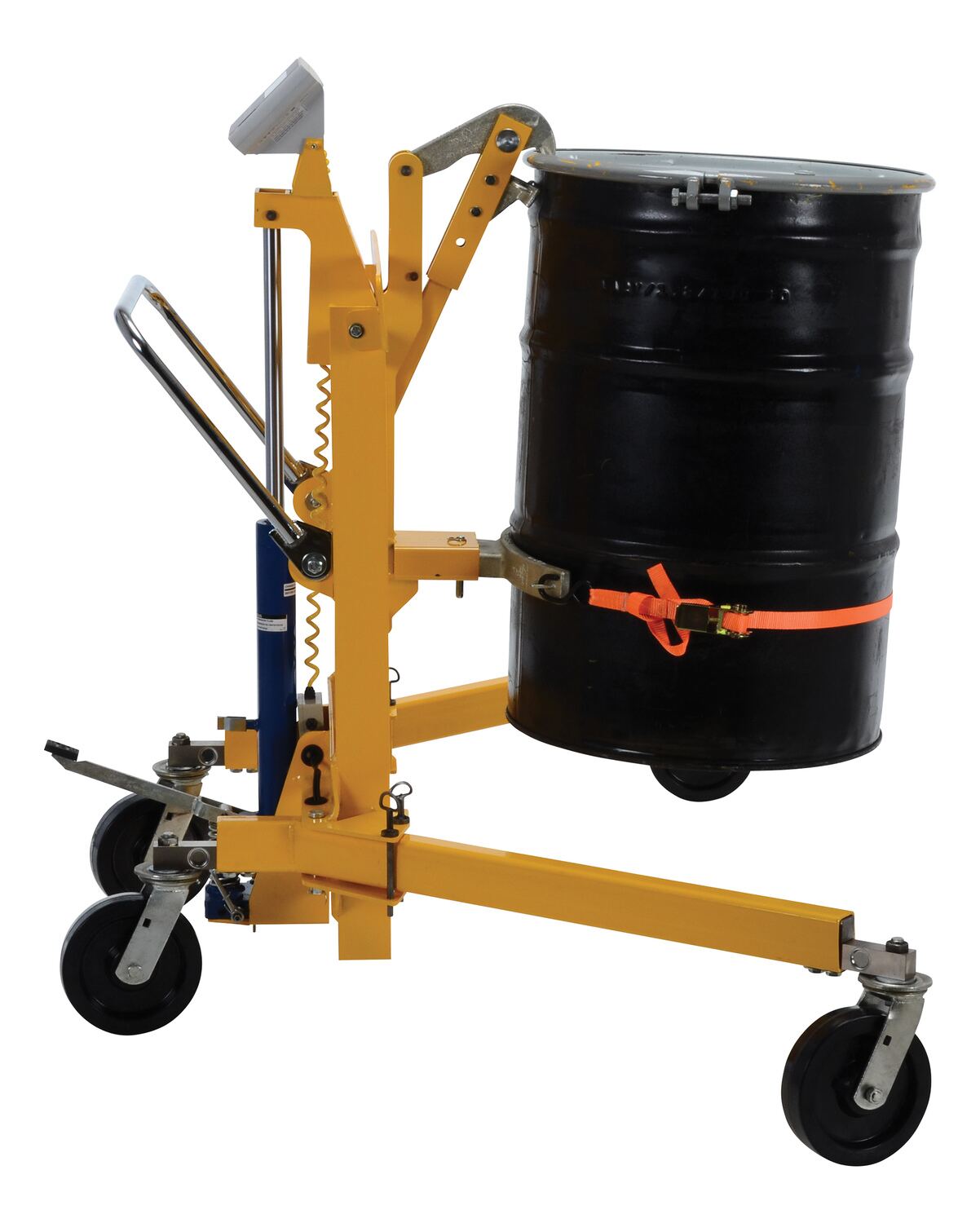 Steel Economical Foot Pump Drum Transporter With Scale 55 Gallon 1500 Lb. Capacity YellowThe portable economical drum transporter is designed to lift and transport drums with a top lip. Drums are secured in place by utilizing the top jaw grip, as well as, the central support and strap. With a foot pump lift design, the user can position the drum to the best suitable height. The legs of the transporter have a straddle design feature that can be alternated to for a safer reach of drums, while on pallets. Scale weighs drums to an accuracy of +/-0.5 pounds and includes (6) AA cell batteries.