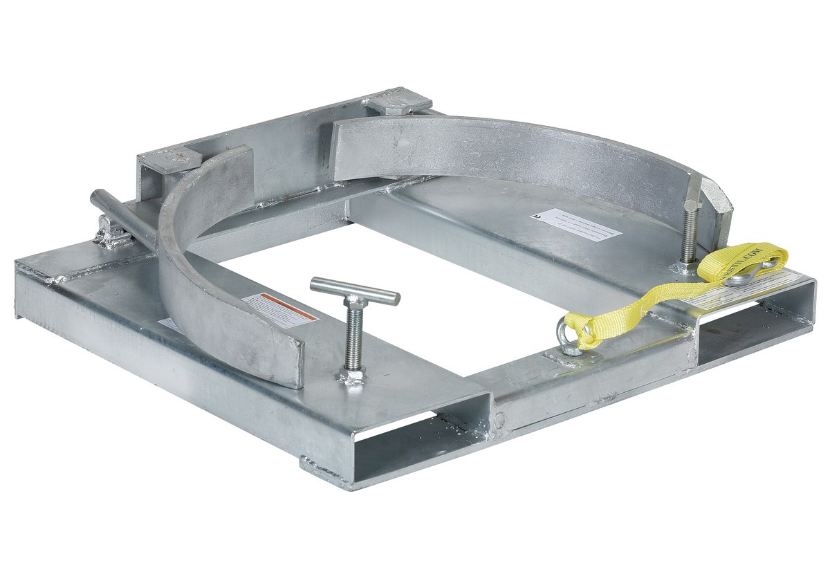 Galvanized Steel Deluxe Single Drum Gripper 55 Gallon 43-3/16 In. x 28 In. x 7-1/8 In. 1500 Lb. Capacity GrayThe drum grippers make it easy to pick up one or two open head (with lid installed and secured) and closed head steel drums without leaving the seat of the fork truck. Simply slip the forks into the fork tubes, fasten the safety restraint and the drum gripper is ready to go. The knuckle gripping system is lowered around the drum, gripped tightly, and then lifted into the air. Drum is automatically released by lowering the forks. All models feature hinged folding design for storage.