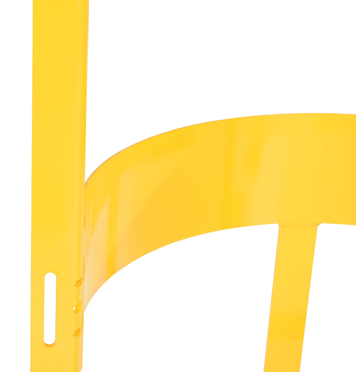 This overhead Drum Lifter is designed for lifting drums with an overhead crane or similar lifting device. Integral fork pockets are also included for transportation with forklift. Safety restraint included. Steel saddle is designed for use with steel, plastic & fiber drums with a ratchet strap for securely holding the drum in place. With a non-tilting style, this lifter is made for straight vertical lifting only. Features a durable yellow baked-in powder-coated toughness. Complies with OSHA Rule 1910.178; ANSI B56.1; ASME B30.20.