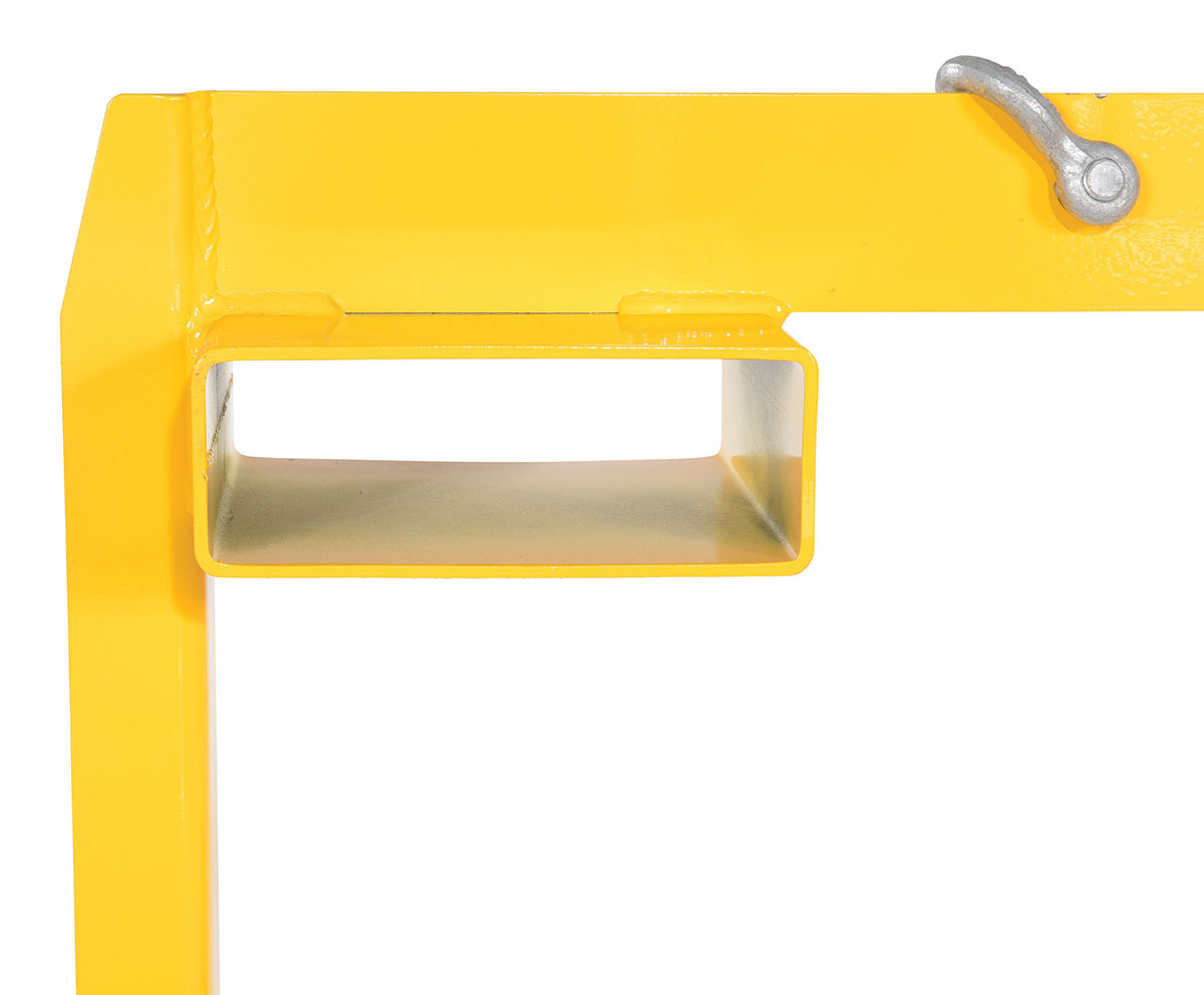Steel Overhead Drum Lifter 19-3/4 In x 28-5/8 In x 49-1/2 In 1000 Lb. Capacity YellowThis overhead Drum Lifter is designed for lifting drums with an overhead crane or similar lifting device. Integral fork pockets are also included for transportation with forklift. Safety restraint included. Steel saddle is designed for use with steel, plastic & fiber drums with a ratchet strap for securely holding the drum in place. With a non-tilting style, this lifter is made for straight vertical lifting only. Features a durable yellow baked-in powder-coated toughness. Complies with OSHA Rule 1910.178; ANSI B56.1; ASME B30.20.