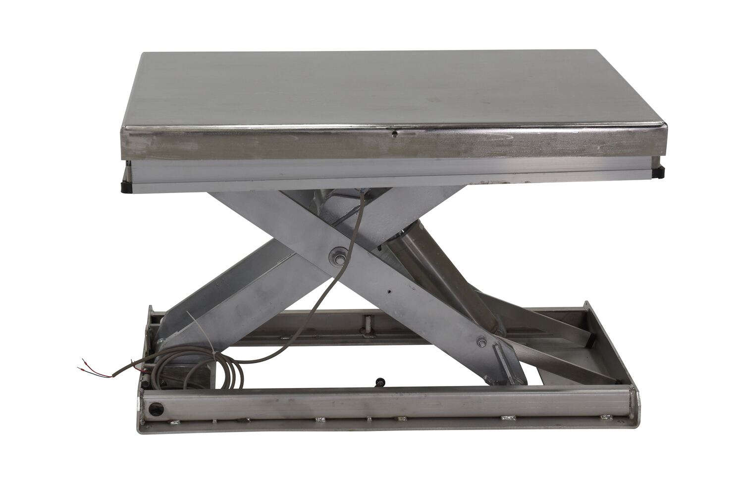 Partially Stainless Steel Work Station Electric Hydraulic Scissor Table 40 In. x 48 In. 1500 Lb. Capacity YellowThe work station electric hydraulic scissor table is designed to raise products up to an ergonomic working height. It maximizes safety with minimum space requirements and is ideal for all types of manufacturing and warehouse facilities. The external power unit can be located eight (8) feet away from the unit and comes with a standard hand control. An electric toe guard also comes standard with the unit.