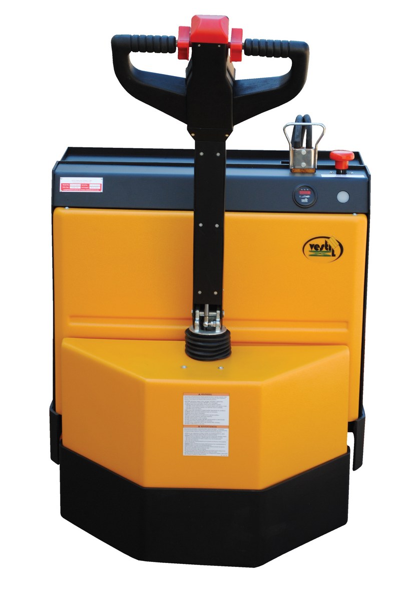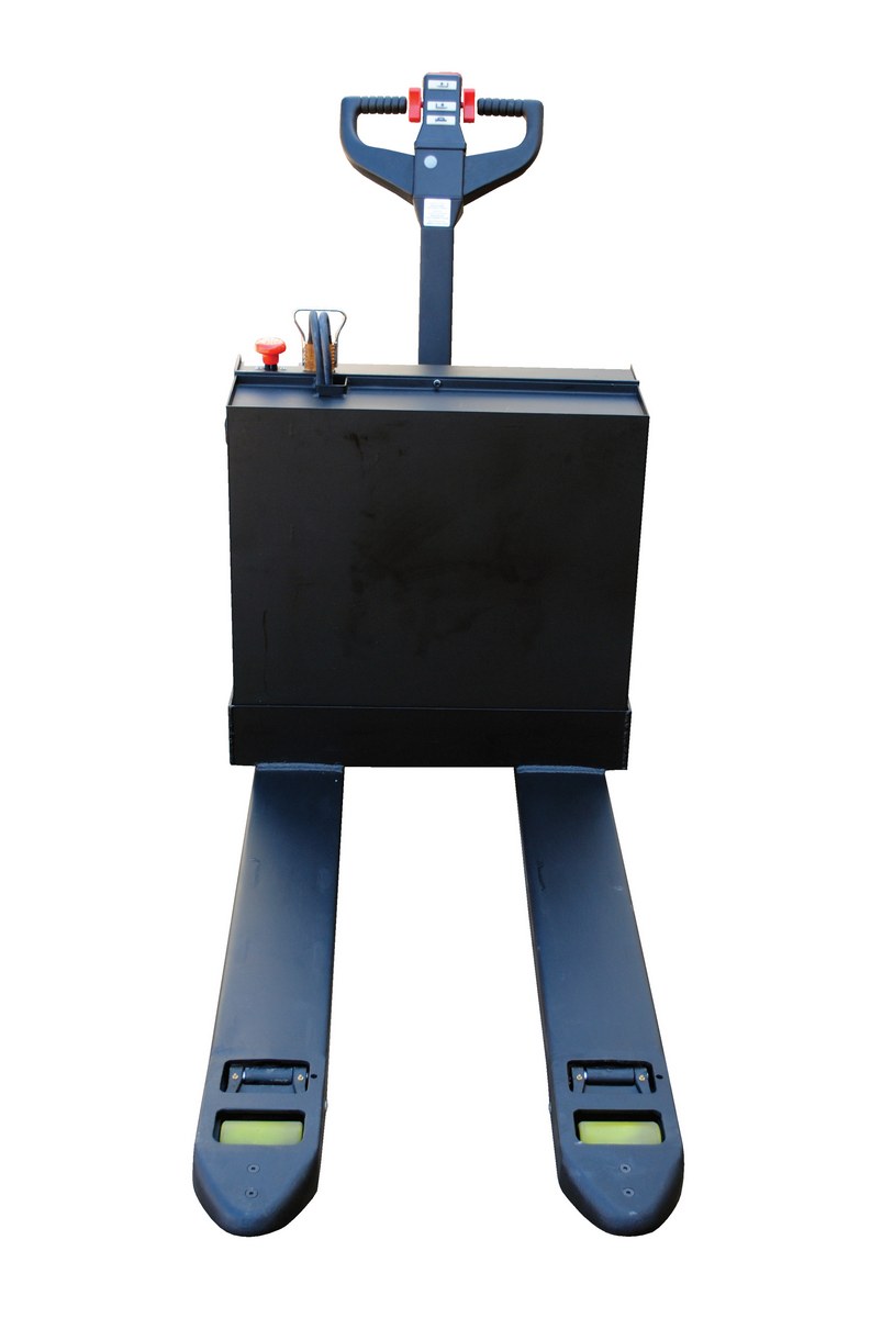 Steel Fully Powered Electric Pallet Truck with Lead Acid Batteries 27 In. x 48 In. 4500 Lb. Capacity BlackThe fully powered electric pallet truck has an easy and quick operation. The unit raises and lowers loads with a push of a button. It can maneuver loads in warehouses and trailers. The reinforced welded forks have adjustable tie-rods that provide long service. The high-torque DC drive and lift motors handle heavy-duty jobs. Pallet truck includes integral battery charger, battery level gauge, and emergency battery disconnect. The truck rolls smoothly on poly-on-steel, steer and load wheels. Ergonomic handle features easy to operate throttle with infinite adjustment of forward and reverse speeds, lift/lower controls, proprietary safety-enhancing emergency reverse function, and horn. When the proprietary safety-enhancing emergency reverse function is actuated, the emergency reverse belly switch instantly reverses direction and moves the unit forward (away from the operator) until the switch is released or after 1.5 seconds have elapsed. The built-in safety circuit will automatically disable the entire unit if the emergency reverse belly switch is activated for more than 1.5 seconds after which the unit must be re-set to return to normal operating conditions. This state-of-the-art safety device provides a high degree of operator protection. Includes an electromagnetic disc brake with automatic dead-man feature that activates when the user releases the handle.