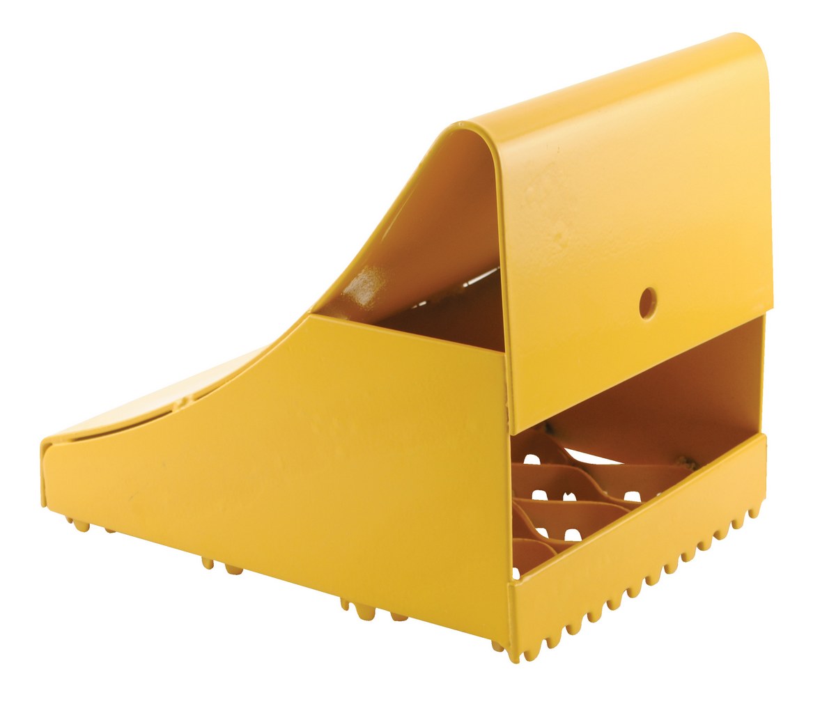 Fabricated Steel Wheel Chock 10-3/4 In. Length YellowThe formed steel wheel chock is perfect for on the go or at the shop. The unique design provides control for the user to securely stabilize the object at hand. The minimal weight of the chock lends itself to simple transference and maneuverability. The compact nature of the unit is great for storage when not in use.