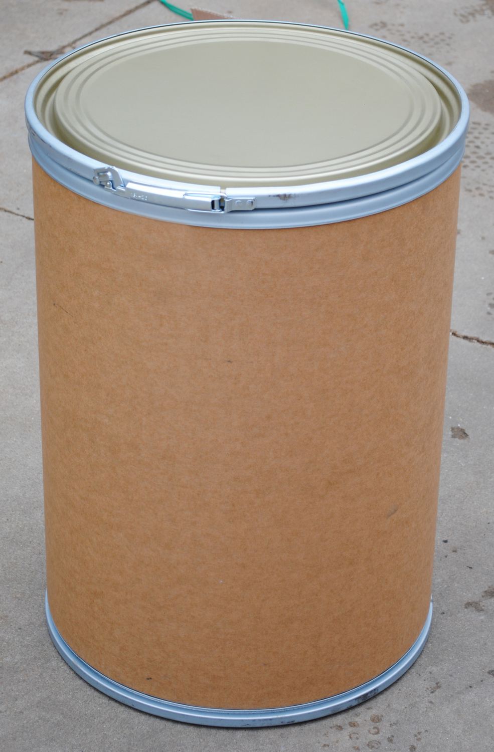 Fiber Drum 30 Gallon 225 Lb. Capacity BrownA lightweight and cost effective alternative to steel drums. The open head fiber drum is a great choice for storage and shipping of dry or solid materials. A steel chime reinforces the top and bottom to keep drum shape and secure contents. Lock rim side lever lock with steel lid cover.