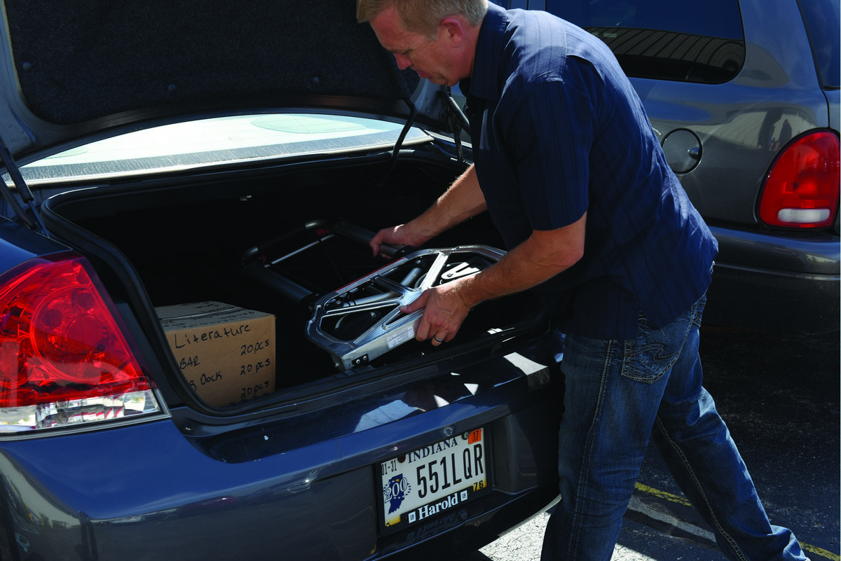 Designed for everyday, all purpose use. The handle and wheels fold up quickly and easily allowing you to store it in tight spaces such as trunks of cars, under tables, or in closets.