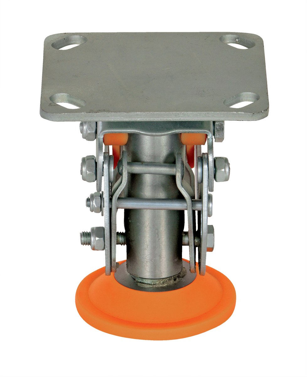 Floor locks are ideal for maintenance and construction facilities. The unit is designed to created a stable environment, while decreasing the chance of jostling or slight movement. The unit is constructed of steel with a thermoplastic polyurethane base. To use, place the unit close to a desired wheel or caster and raise until tension is built. Once secured, a simple locking device can be activated by applying pressure to the foot pedal.