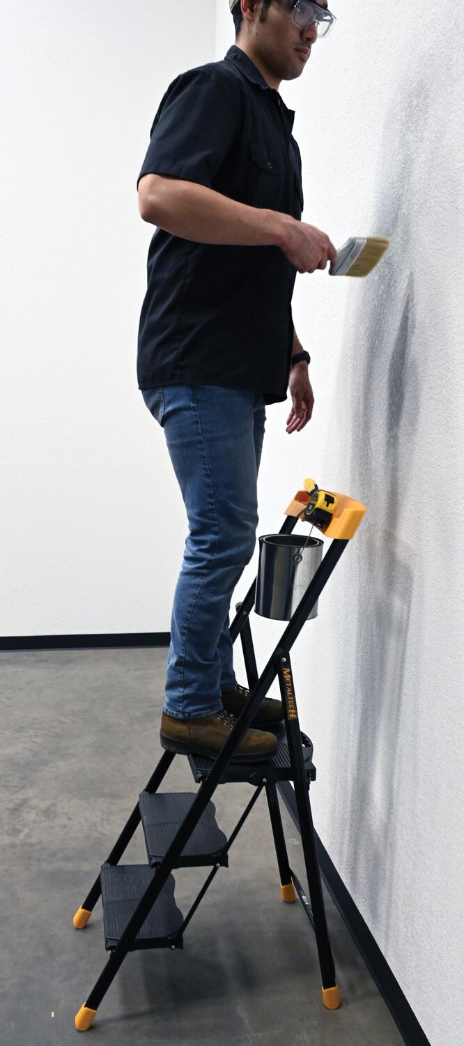 Steel Pro Step Stool 3 Step 250 Lb. Capacity BlackThis durable, multipurpose ladder is perfect for homes, offices, schools, and the industrial warehouse. The compact design can quickly be turned from a standard step stool into a flat profile, making it perfect for storage and on the go. Never to be overlooked, with safety always being the number one priority, the anti-slip platforms help provide a secure climb and descent from the step stool.