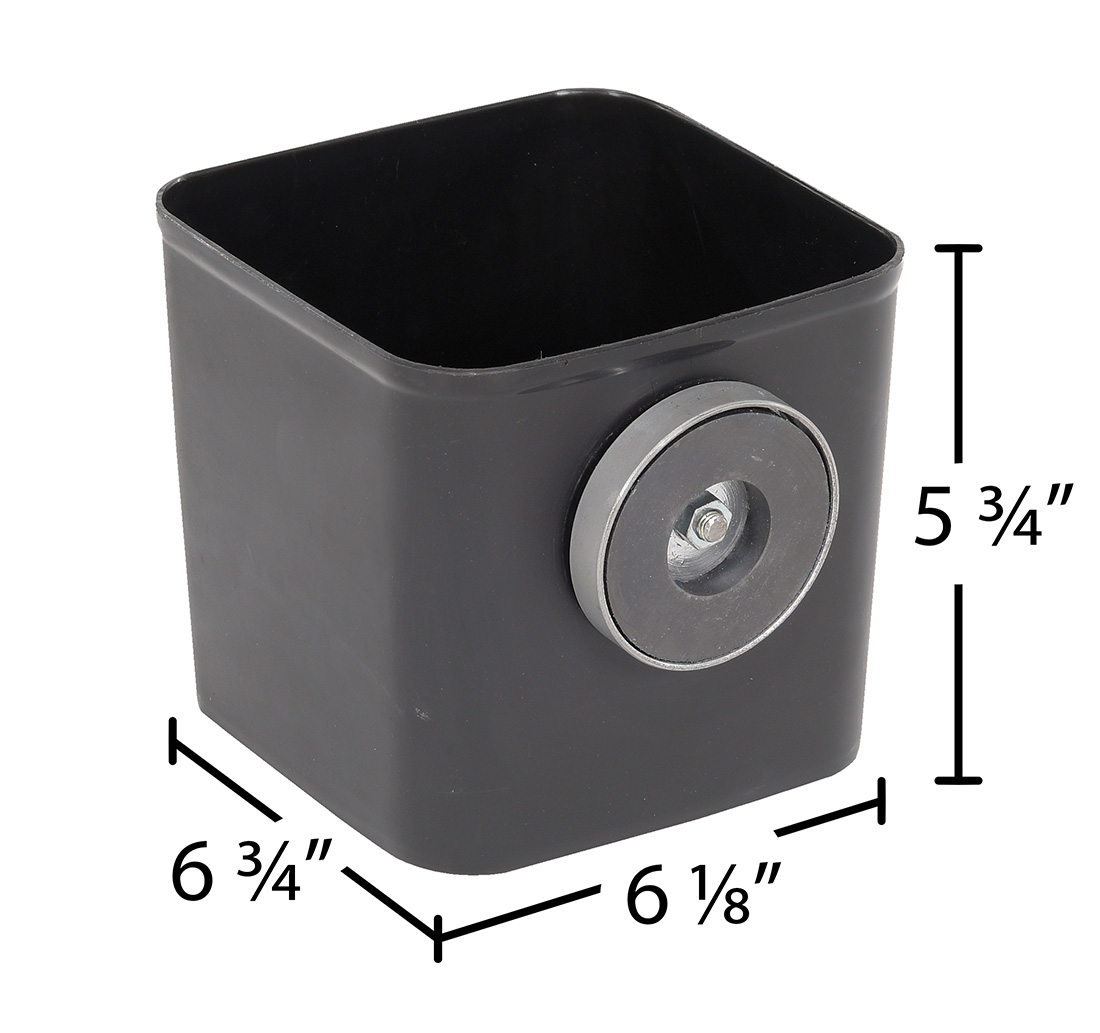 Plastic Fork Truck Magnetic Storage Bin 6-3/4 In. x 6-1/8 In. x 5-3/4 In. BlackForklifts have always had limited room for additional parts and tools. But, now, with the magnetic storage bin, carrying parts and tools has never been easier. Simply place the magnetic bin to the desired part of a forklift and begin filling with items. The plastic construction minimizes abrasion to items and is lightweight for maneuvering if needed.