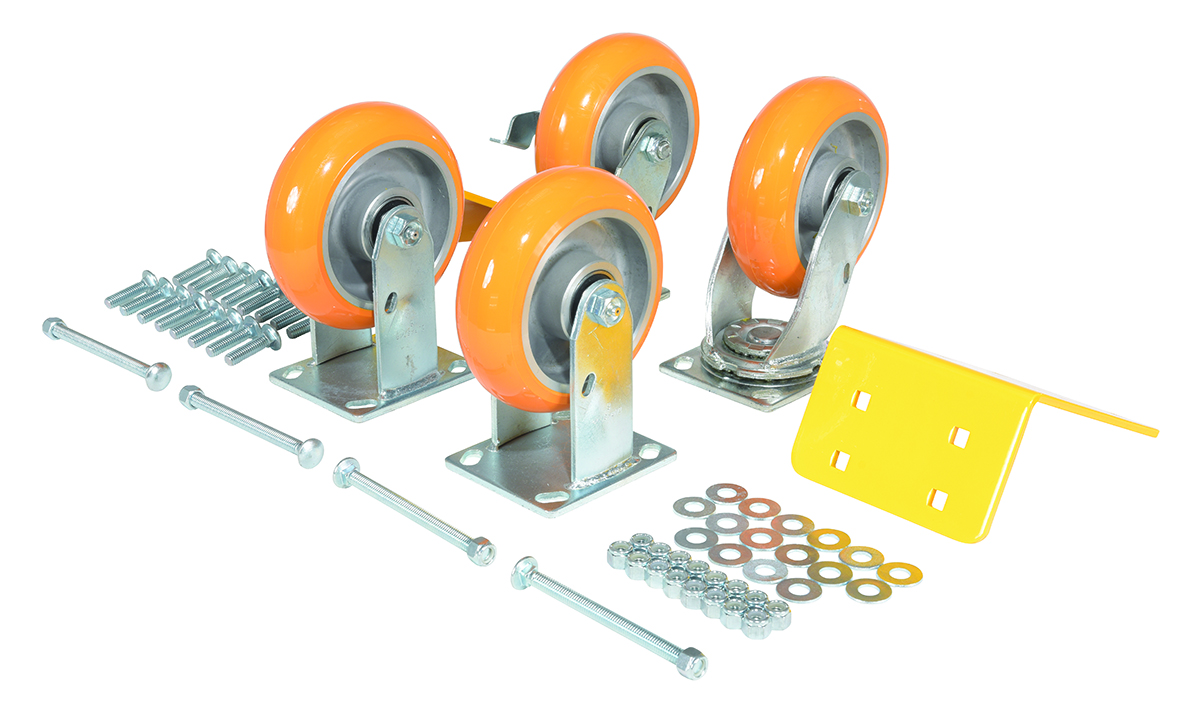 Elastic Polyurethane Caster Kit 6 In. x 2 In. 5,000 Lb. Capacity ButterscotchConstructed of high-grade elastic Polyurethane and coupled with 6203 premium precision ball bearings for added strength and durability. The upgraded tread provides A longer life, reduces the force required for movement and offers exceptional floor preservation. Orange tread color. 85 Shore A. high grade design. Made In Taiwan.