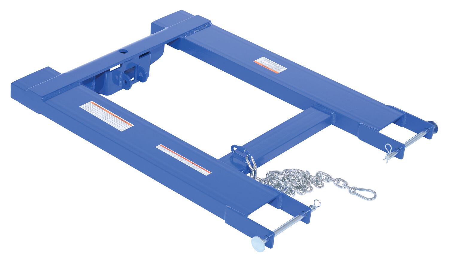 Steel Fork Truck Hook Base 32 In. Length 4,000 Lb. Capacity BlueConvert your fork truck into a tow truck for moving trailers and other portable equipment using this Fork Truck base. Simple design slides onto forks and secures into place with pin style tine locks. Welded steel construction with powder coat blue finish.