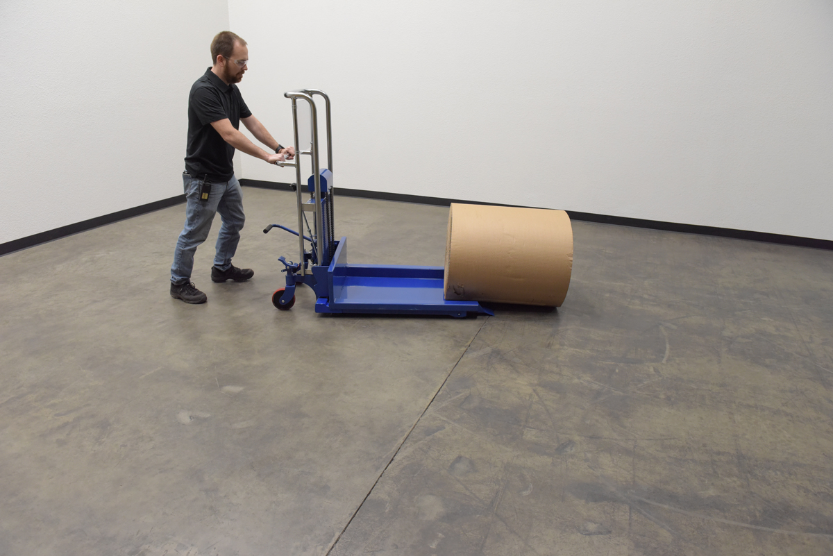 Steel Low Profile Hefti-Lift 53-1/2 In. x 53-3/4 In. 880 Lb. Capacity BlueWhen an object is just too hefty to lift by hand, it's time for the low profile heft-lift to take action. A simple foot operation to lift and lower the unit keeps the hand free. The platform can be lowered all the way to the ground for simple loading unloading of products and has the width to handle items that are large and awkward or small and compact. The poly casters give the unit a smooth roll over a variety of surfaces.