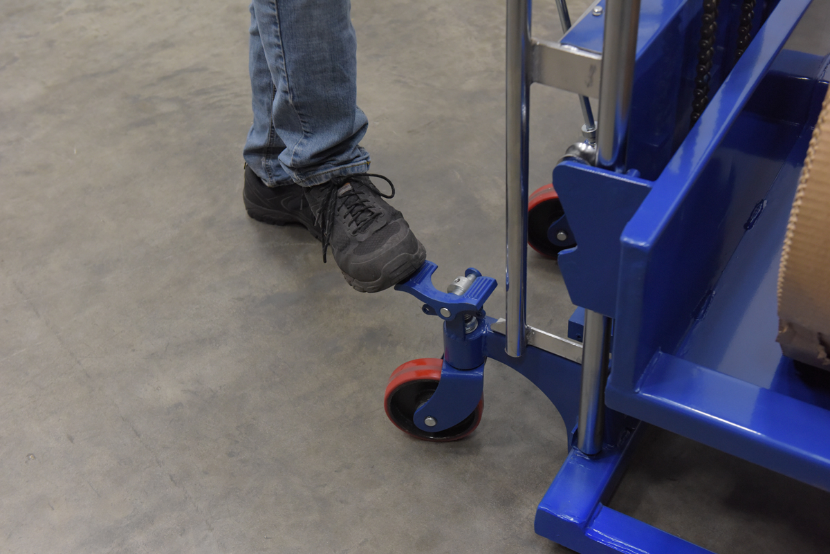 When an object is just too hefty to lift by hand, it's time for the low profile heft-lift to take action. A simple foot operation to lift and lower the unit keeps the hand free. The platform can be lowered all the way to the ground for simple loading unloading of products and has the width to handle items that are large and awkward or small and compact. The poly casters give the unit a smooth roll over a variety of surfaces.