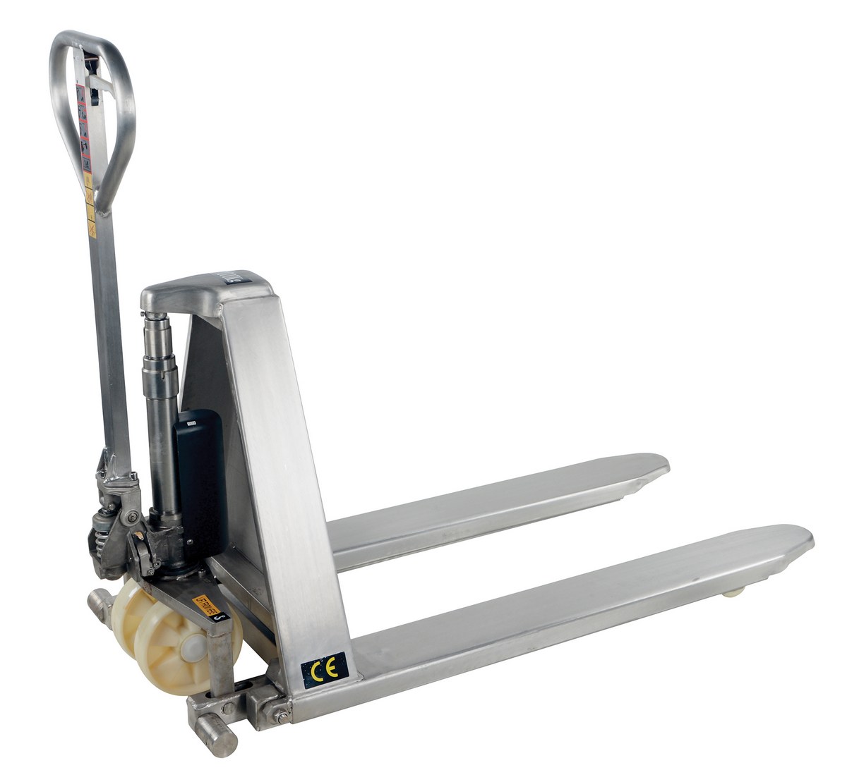 Stainless Steel Hand Pump Tote Lift 60 In. x 27 In. x 48 In. 2000 Lb. CapacityThe tote lifter is designed to lift open bottom skids, boxes, and baskets. This lifter has the hand pump to raise or lower. The hand pump design features an ergonomic pump handle with two (2) lifting speeds to accommodate for light or heavy loads. The side stabilizers lock lift in place when load is raised over a certain height.