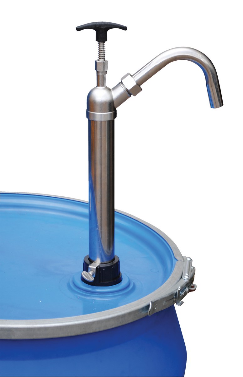 This manual drum pump is designed for dispensing and transferring liquids out of fifty-five (55) gallon drum. This hand pump is constructed of 316 stainless steel.