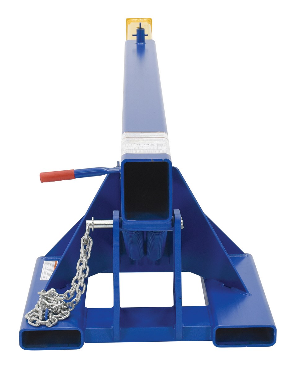 Steel Orbit Telescoping Lift Boom 24 In. Fork Pocket Center 8,000 Lb. Capacity BlueUnique performance, convenience, and safety features are built into every lift master boom. Fabricated from structural steel with welding to meet AWS creates a rugged and durable boom that will provide long term service. A safety restraint secures the boom to the fork truck for safe operation. Includes two (2) lifting hooks.