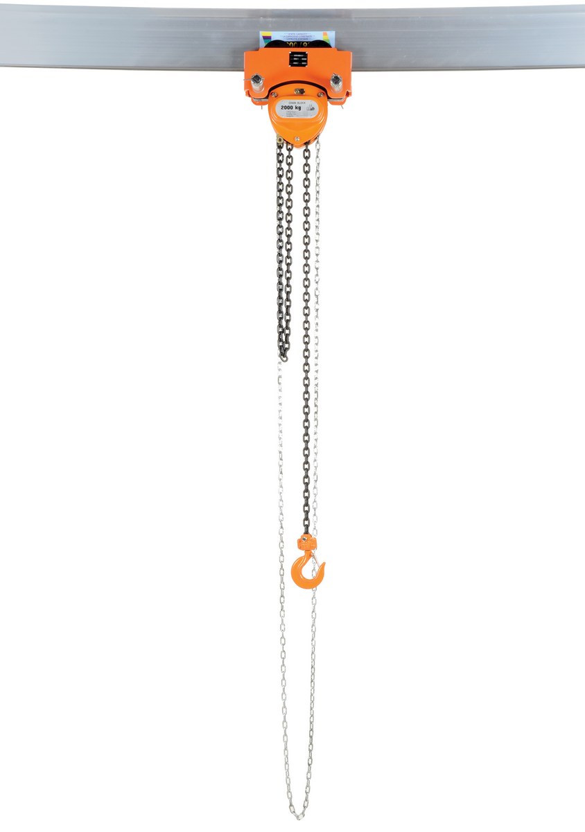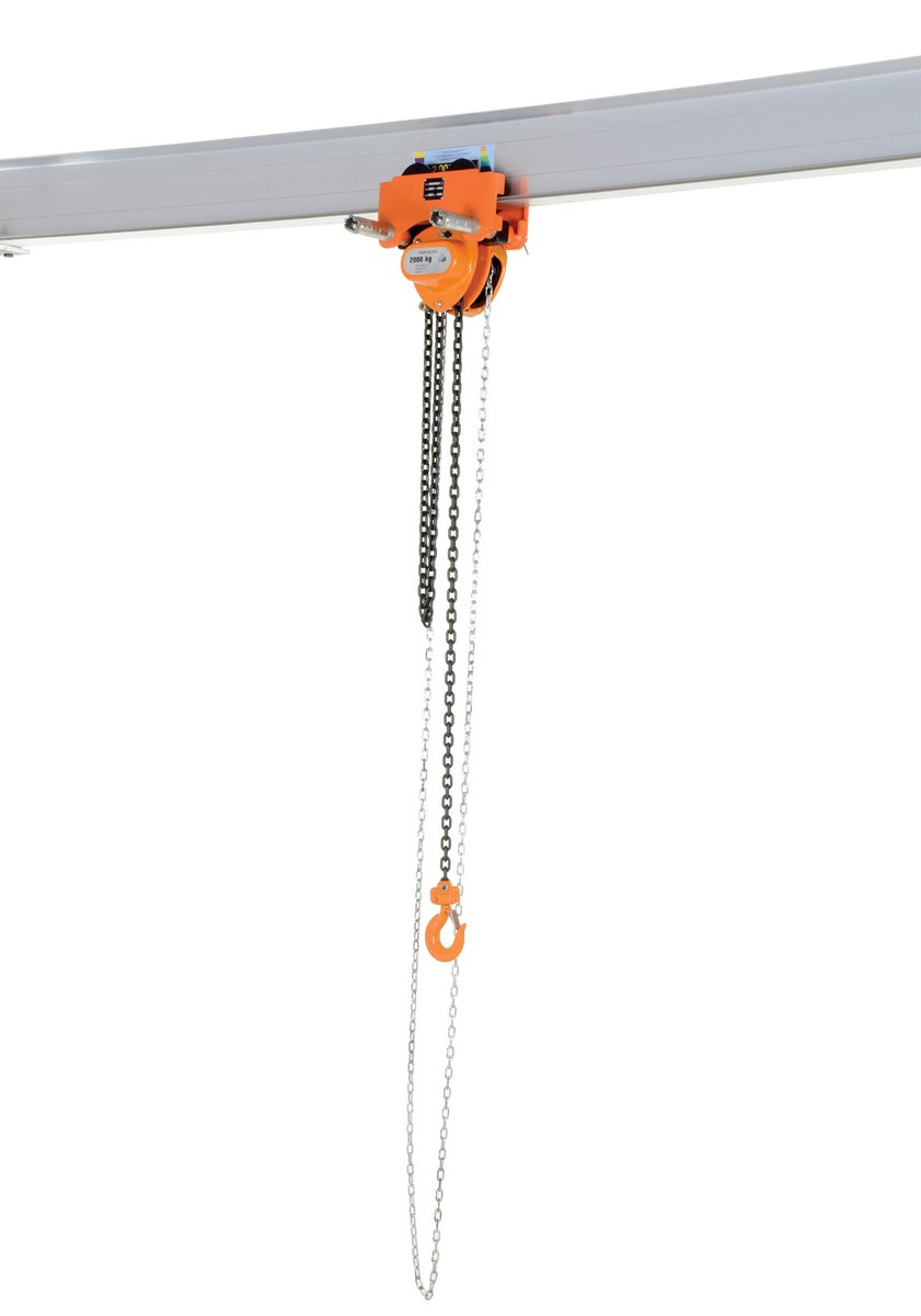 Steel Low Headroom Chain Hoist Push Trolley 14 In. x 11-1/2 In. x 14 In. 4,000 Lb. Capacity OrangeUse this low headroom Chain Hoist geared trolley to gain additional raised hook height. Chain hoist hook travel is ten (10) feet. Fits on wide flange or S-type I-beam.