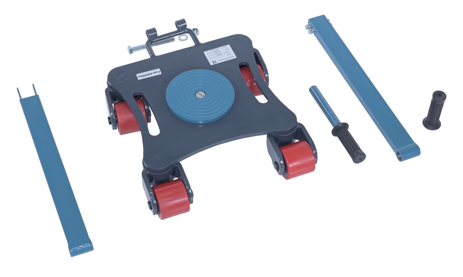 Steel Multi Direction Machinery Skate 12 In. Length x 12 In. Width x 4-7/16 In. Height 6,600 Lb. Capacity Blue and GraySometimes moving heavy equipment can be a difficult process. But, with a machinery skate things get a whole lot easier! The high capacity design lets the user transfer large, heavy, and oversized loads without the need of costly industrial lifting equipment. With the skates’ compact size; multiple skates can be used under a single piece of equipment giving the user complete control of the movement during transport. Blue and gray powder coat finish. Hardware is included.