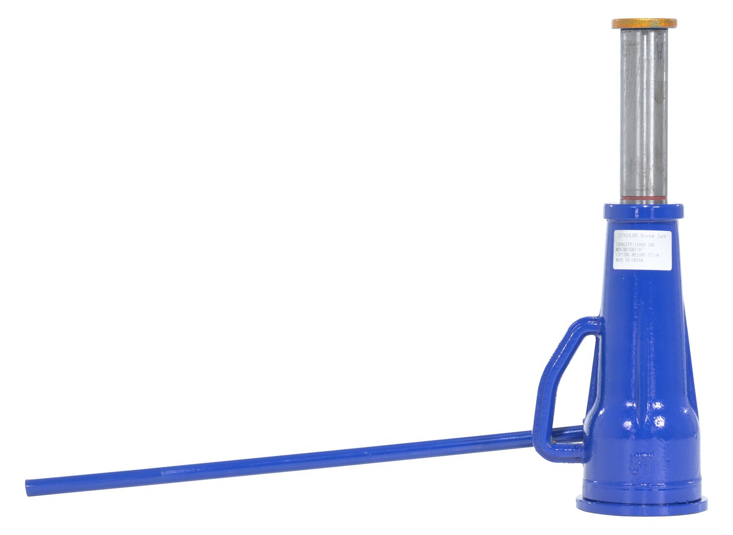Steel Mechanical Screw Jack 6-3/8 In. x 5-9/16 In. x 22-1/4 In. 10,000 Lb. Capacity BlueThe mechanical screw jack is ideal for the manufacturing and maintenance industries. The design allows for an impacting surface area which creates more stability. The steel construction enables the product to be strong and durable. The included handle is removable.