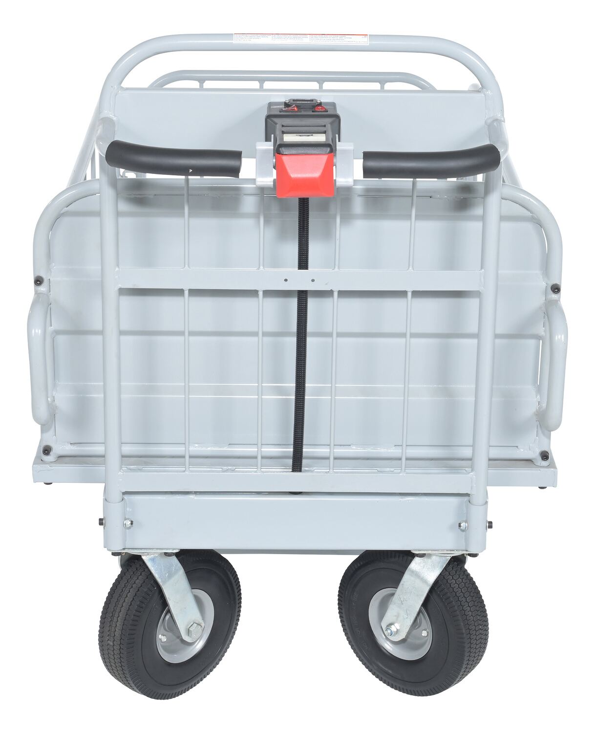 Steel Off-Road Traction Drive Cart 500 Lb. Rough Terrain Capacity GrayThe off-road traction drive powered cart is ideal on the farm or in the factory. Forward/reverse switch. Side guards are removable.