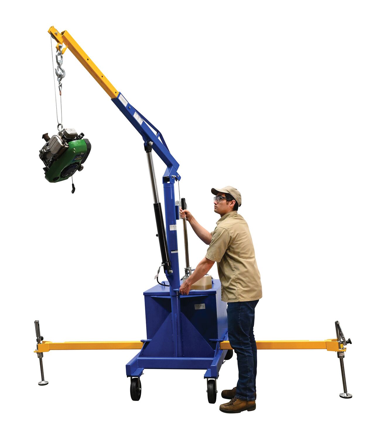 The portable Cantilever hoist is built for heavy lifting. The swivel crane makes for simple side loading and controlled lowering. Maximum arm length beyond the frame is 50-3/8". Unit is available with or without counter balancing ballast. Painted finish.