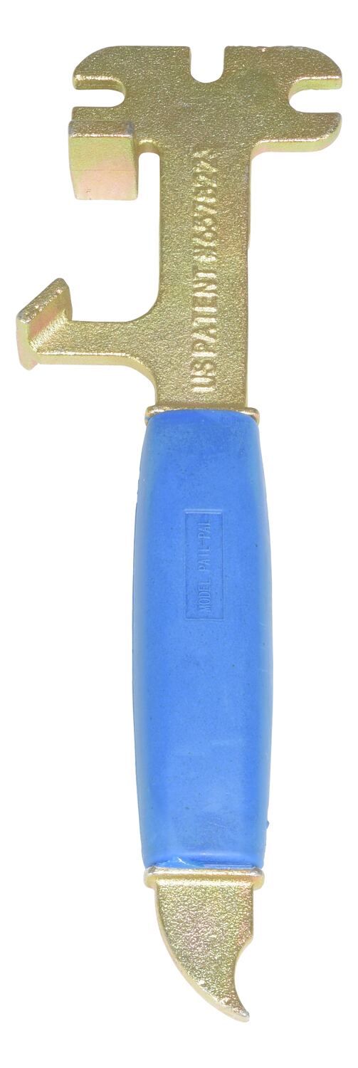 Cast Steel Pail Opener 11 In. x 3-1/2 In. x 1 In. 5 Gallon GoldA must-have product for anyone using five gallon plastic and steel pails. The cutter is used to cut a slit in the lid lip of the pail to enable the lid of the plastic pail to be removed. The side guide conveniently slides under the lid lip for easy removal of the lid. The end hook is used to open steel pails. Just hook the lid lip and rotate. The opposite end is used to close and seal the lid by bending the lip back around the steel pail top. Not for UN rated pails.