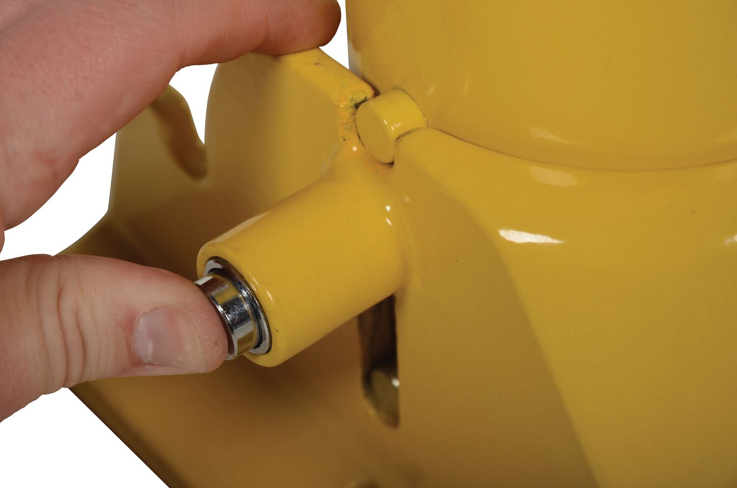 Steel Fold Down Bollard 8-1/4 In. x 7-1/2 In. x 35-1/2 In. YellowThe fold-down bollards are ideal for industrial and distribution facilities. The heavy duty, stainless steel construction is durable and long lasting through the harshest of environments. Secures in open position via internal lock, two keys included, along with mounting hardware.