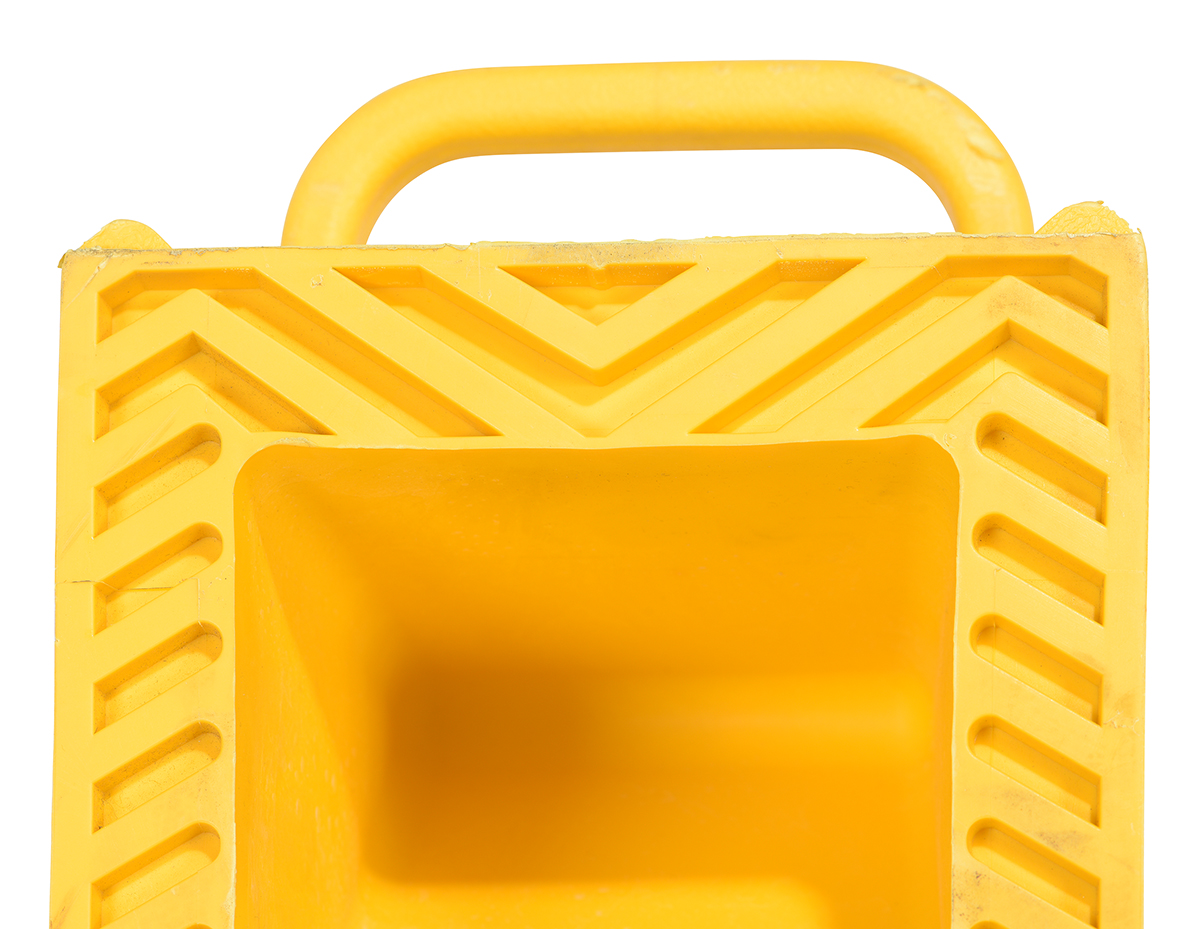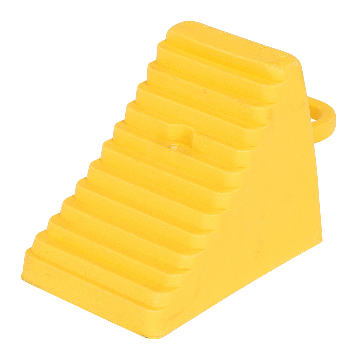 Polyethylene Wheel Chock 5-1/2 In. x 12 In. x 17-1/2 In. 7,000 Lb. Capacity YellowA polyethylene wheel chock helps maintain stability on uncertain surfaces. With a steady foundation, the chocks minimize the chance of movement or jostling. A lightweight design is perfect for carrying and transference from areas to area. With a bright design, the color promotes clear visibility. The chock is compact in size for minimal storage space when not in use.