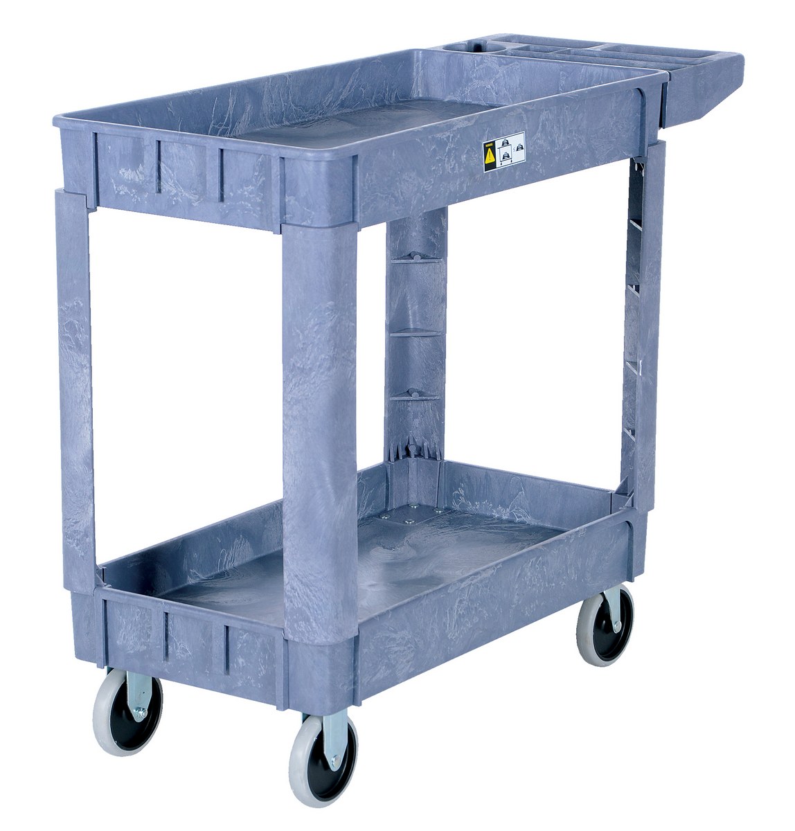 Plastic Utility Service Cart 2 Shelves 40 In. x 18-1/2 In. x 33-1/2 In. 550 Lb. Capacity GrayThis plastic utility service cart is constructed from durable yet lightweight structural foam plastic. Choose the two (2) shelf design to accommodate your application. Deep lips prevent parts from rolling off. Ideal for mail rooms, shipping docks, grocery stores, warehouses, and inventory rooms.