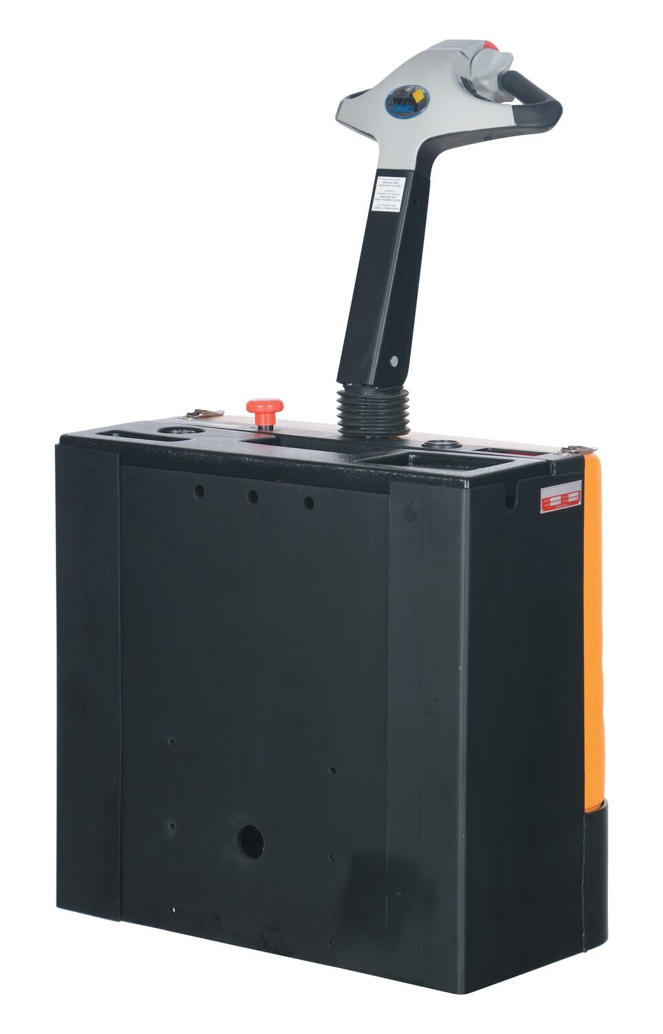 Optional Power Traction Drive system has a combination throttle/direction. The traction drive system also features an auto reverse emergency "belly" switch.