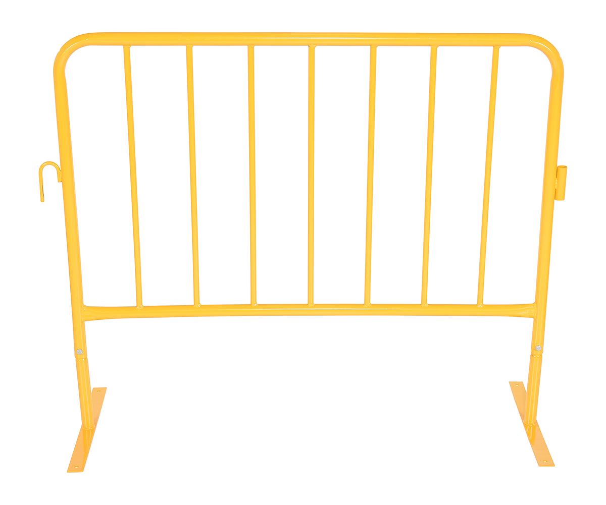 Steel Crowd Control Interlocking Barrier with Flat Feet 47-1/2 In. Length YellowThe Heavy Duty crowd control interlocking barrier is attractive and the functional design is ideal for directing personnel. Interlocking portable railing has many commercial and industrial applications. Upright bars are vertically spaced. Each railing includes connectors to attach multiple units together to form long runs. Units are easy to move to meet changing needs. Barriers have flat and compact design to minimize storage space when not in use.