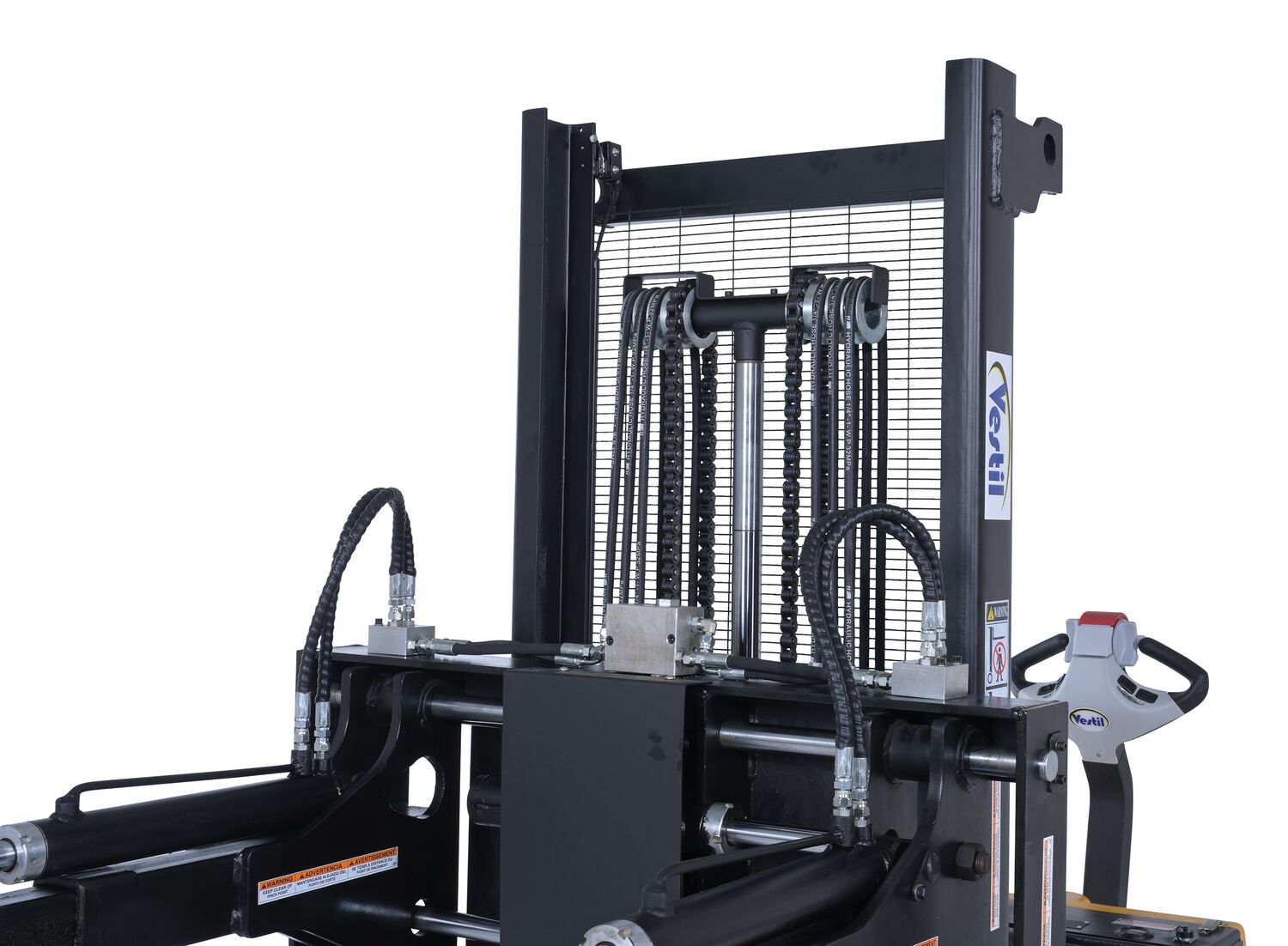 The fully powered vertical drum gripper/rotator is a great asset for the manufacturing and distributing industries. The shortened length allows for use in very tight areas, while the extendable reach helps load and unload places where access is limited, such as pallets and skids. A walk behind design with a max unloaded speed of over 3 mph and a single handle control makes maneuvering into the desired position easy, maximizing efficiency. Long term battery charge allows for constant daily use without needless downtime.