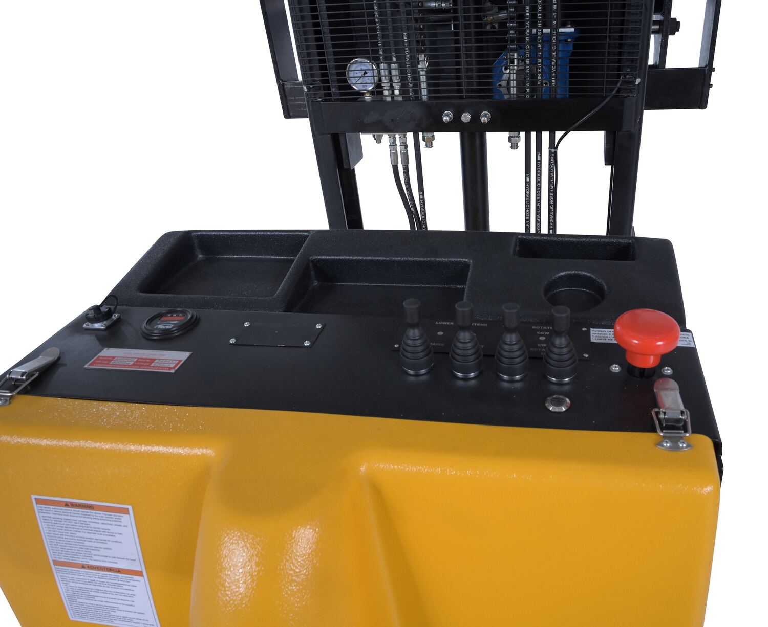 Steel Vertical Drum Gripper/Rotator Stacker With Gripper Max Reach 35.5 In. Dispensing Height 71 In. 800 Lb. Capacity Black / YellowThe fully powered vertical drum gripper/rotator is a great asset for the manufacturing and distributing industries. The shortened length allows for use in very tight areas, while the extendable reach helps load and unload places where access is limited, such as pallets and skids. A walk behind design with a max unloaded speed of over 3 mph and a single handle control makes maneuvering into the desired position easy, maximizing efficiency. Long term battery charge allows for constant daily use without needless downtime.