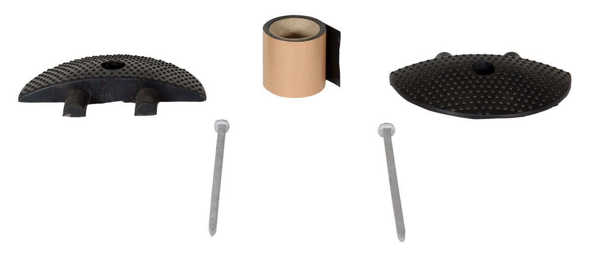 | Package Contents: (2) End caps, (2) asphalt spikes, (1) roll of butyl tape | Traffic Control Type: Speed Bump |