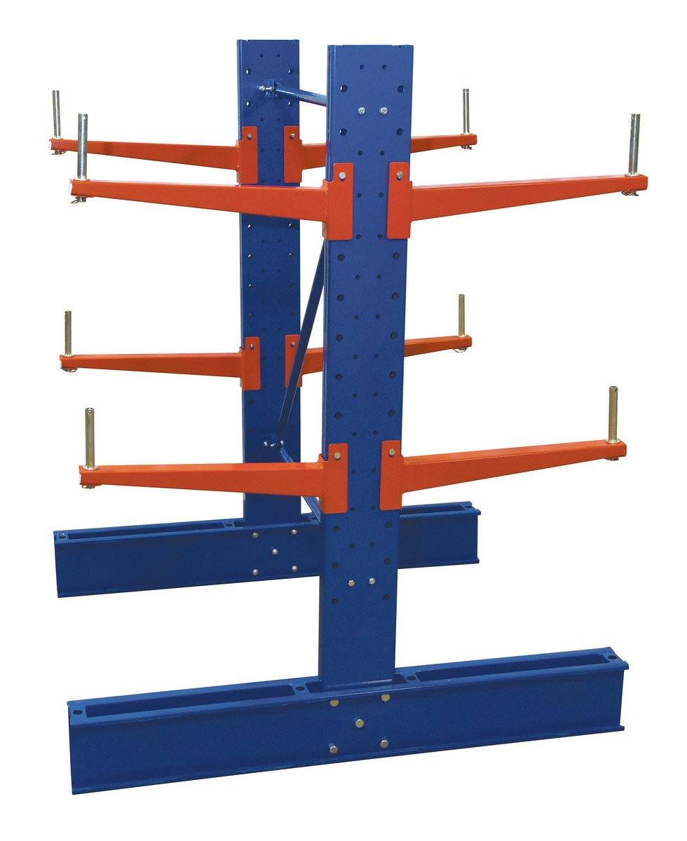 Steel Standard Cantilever Double Upright 6 Ft. Height 24 In. Arm Use Length Set 15,400 Lb. Capacity BlueThe Cantilever racks are ideal for eliminating storage problems. The steel constructed design allows for quick and efficient handling by forklift or by hand. The rack includes pre-drilled holes, adjustable arms for access to variable heights, and front lipped arms to prevent items from falling. Available in both single sided and double sided units with the option of standard, medium, or heavy duty construction.