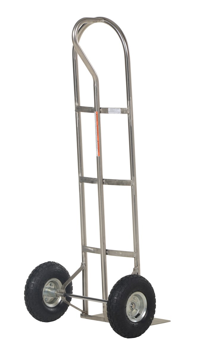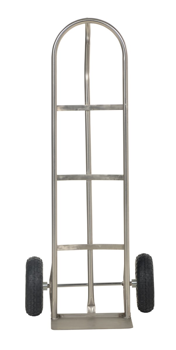 Stainless Steel P-Handle Truck with Pneumatic Wheels 500 Lb. Capacity SilverThe "P" handle Hand Truck is ideal for transporting heavy and awkward loads. This truck works well for the user that needs to free up one hand. The "P" shaped handle makes the truck easy to steer and maneuver. Axle and wheel hub not stainless steel.