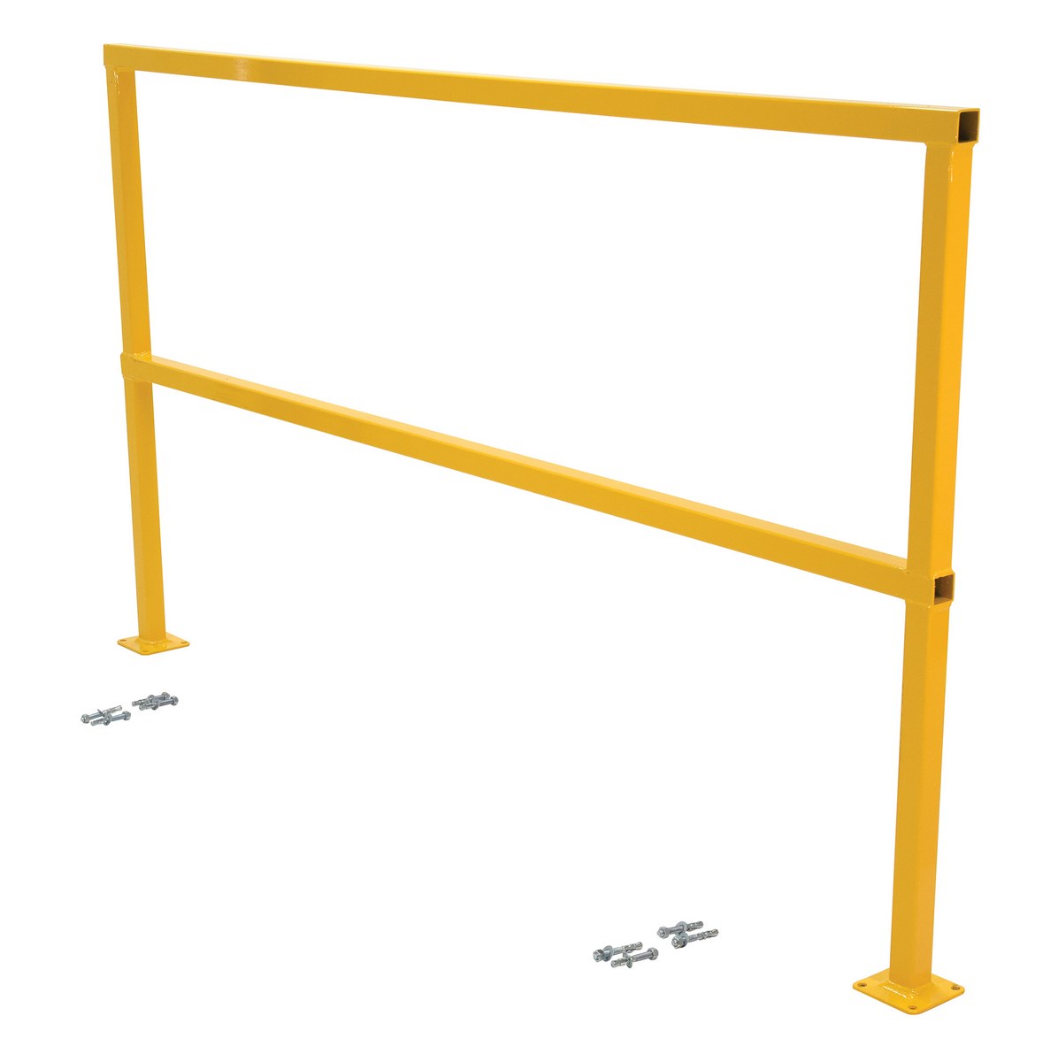 Steel Safety Handrail with Hardware 74-1/2 In. x 4 In. x 42 In. YellowSteel square safety Handrail provides an economical way to protect people and machinery. Applications include loading docks, floor openings, walkways, and mezzanines. Highly visible safety yellow powder coat finish, hardware included.