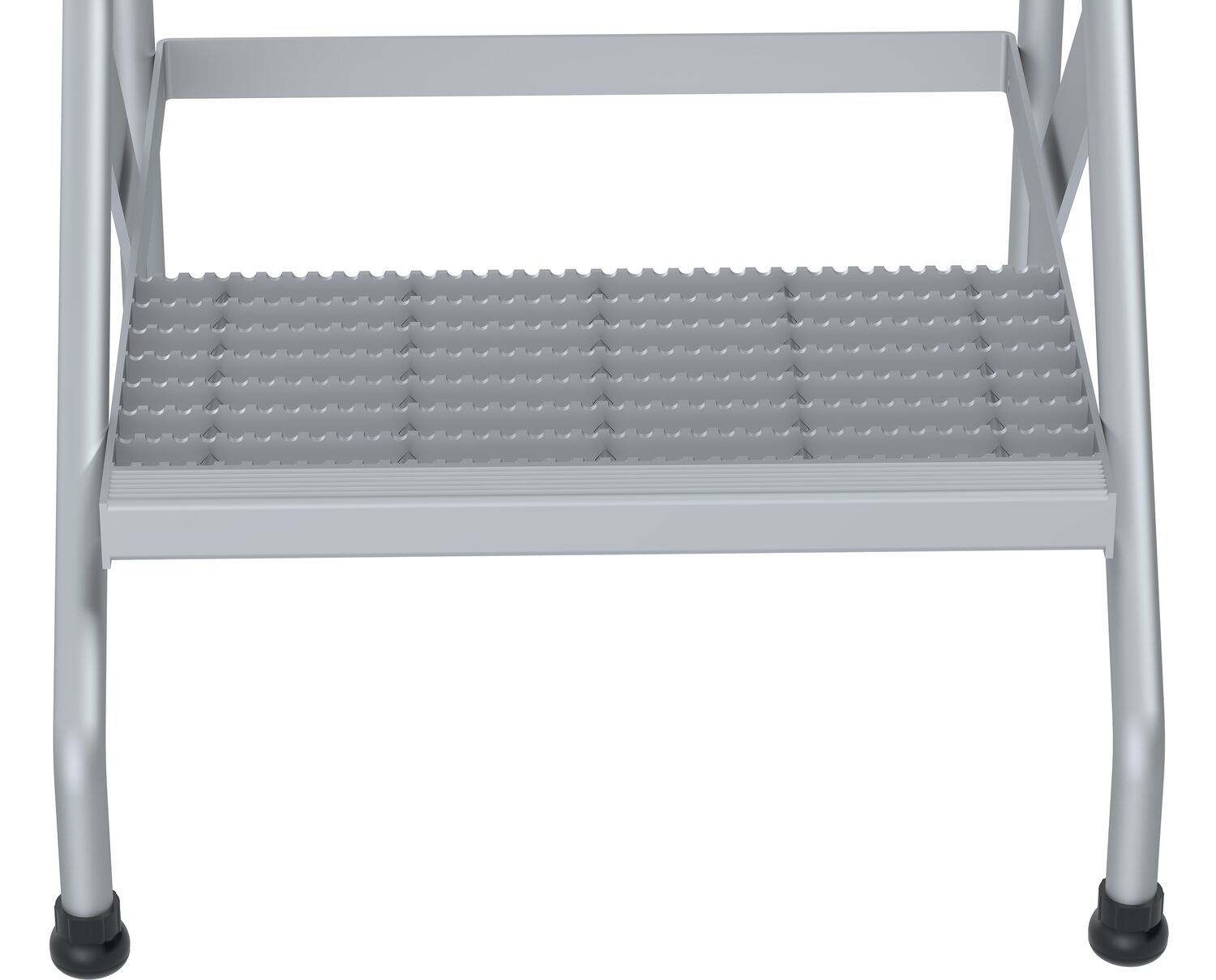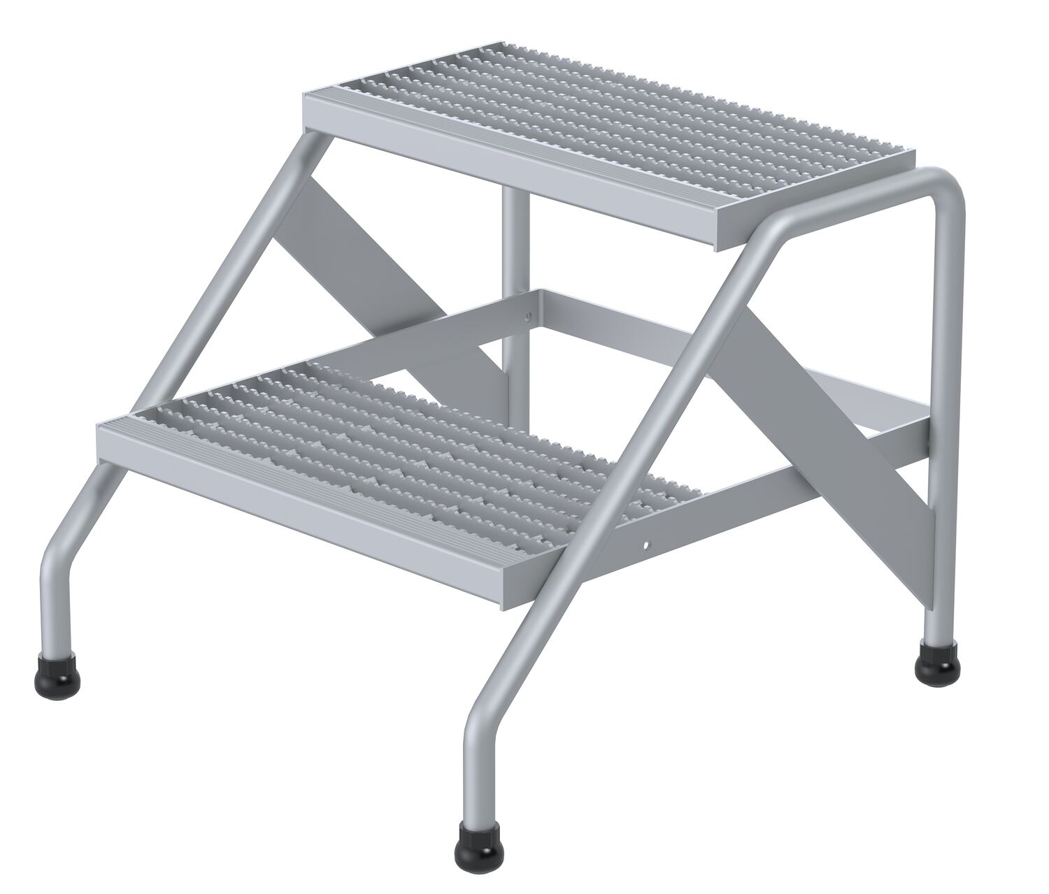 Aluminum 2 Step Stand 500 Lb. Capacity SilverThis Aluminum step stand is ideal for industrial or commercial applications. It is lighter than comparable steel models. Open step design includes extra heavy duty serrated surface for traction. With rubber tipped legs, this step ladder is ideal for use on many types floors.