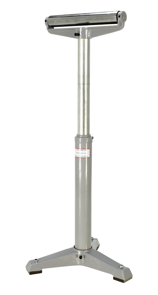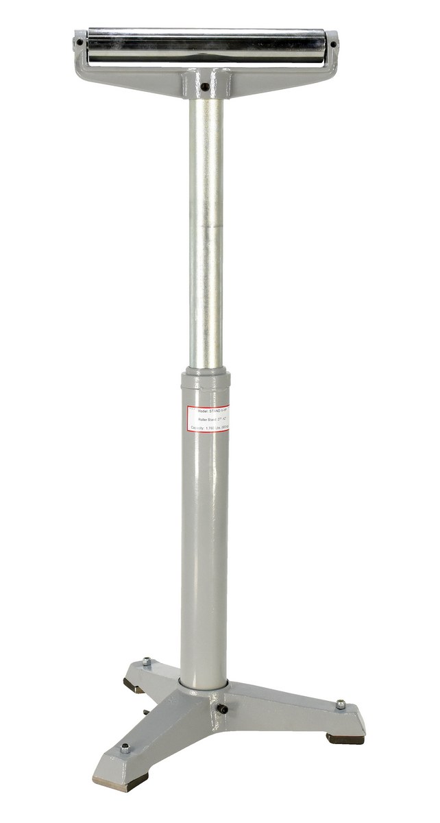 The deluxe roller stand is designed for use as an extra hand when working with long materials. Each stand includes chrome plated rollers and heavy-duty cast-steel base. This deluxe roller stand is a flat single roller design. The height of each stand is adjusted with a friction lock screw or a gas charged cylinder. The unit is great for use in machine and wood shops and also includes a counter balance mechanism. Models utilize a gas charged cylinder for maximum efficiency and precise positioning. The gas cylinder minimizes adjustment time and limits manual interaction with the unit.