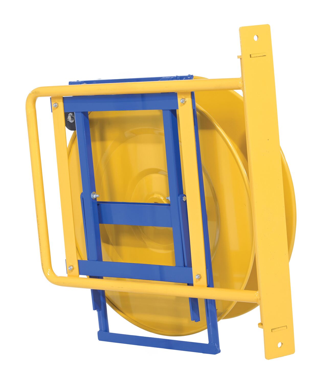 Steel Wall Mounted Strapping Cart YellowThis unique wall-mounted strapping dispenser is for use with steel and poly strapping. The mounting bracket pivots to allow for use in any direction. The unit also pivots up to allow for easier loading of new strapping coils.