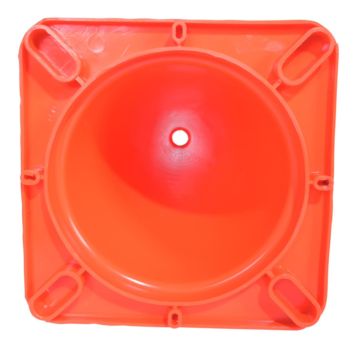 This durable all weather cone is constructed from one-hundred (100) percent PVC for long life. The construction prohibits fading and cracking. Will retain its shape for years of reliable service.