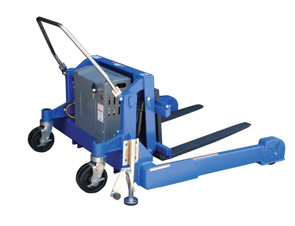 Steel Tilt Master Straddle DC Powered 12 Volt 2,000 Lb. Capacity BlueThe tilt master straddle lifts and positions filled tote boxes or baskets without the need of a fork truck or lift table using the newly designed heavy-duty tilt master. The tilter will function as transporters by moving completed products from work station to work station without waiting for a fork truck. This lift has a thin profile to allow the user to get as close to the load as possible. It also has a standard floor lock and rolls easily on the phenolic steering wheels. Lift is designed to be used with virtually any kind of container or pallet. The unit is powered by a DC electric motor that includes an on-board battery charger and battery charge indicator